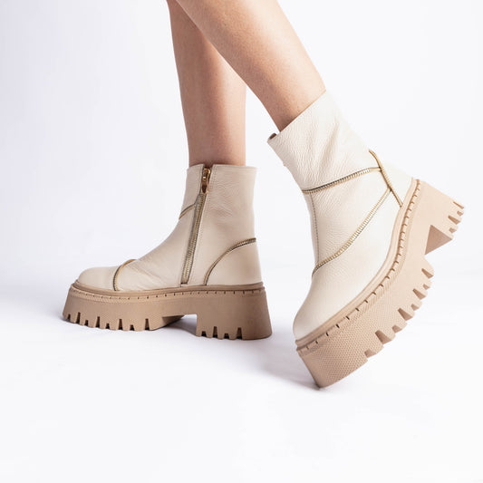 Bocanci Petra din piele naturală – stil robust, calitate premium · Culoare : Piele bej ...