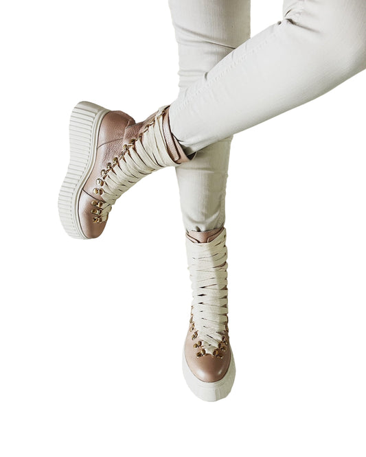 Bocanci Zoe din piele naturală – stil robust, calitate premium · Culoare : Piele bej/...