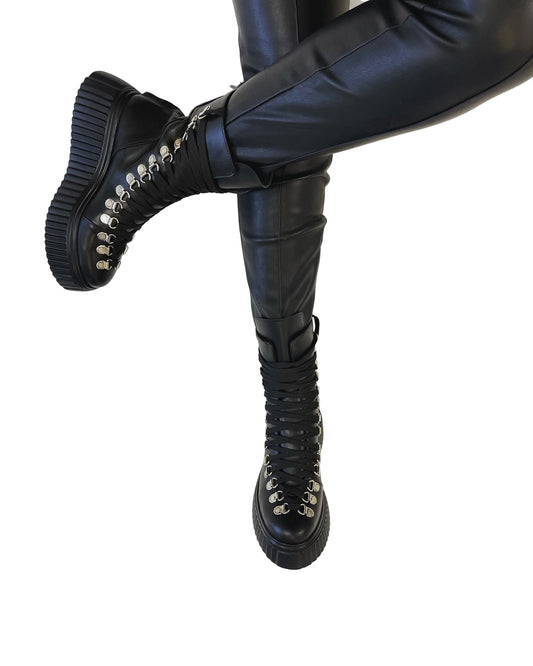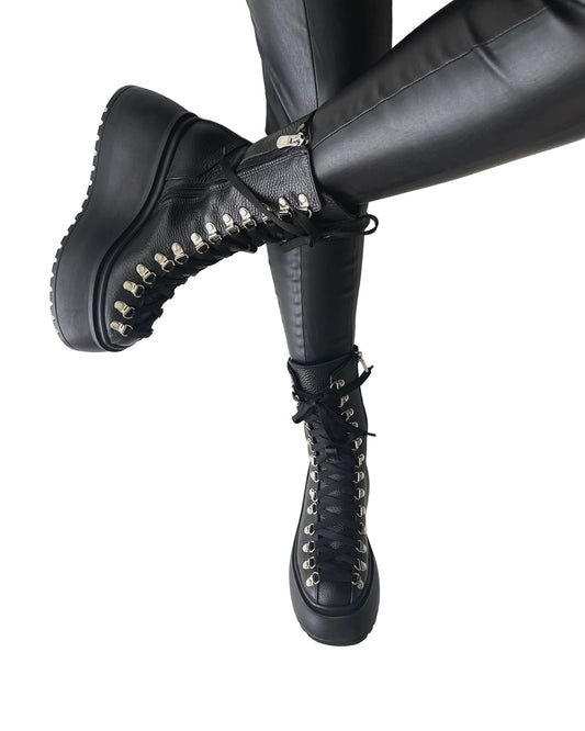 Bocanci Zoe din piele naturală – stil robust, calitate premium · Culoare : Piele neagra/...