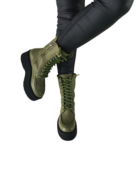 Bocanci Zoe din piele naturală – stil robust, calitate premium · Culoare : Piele kaki/...