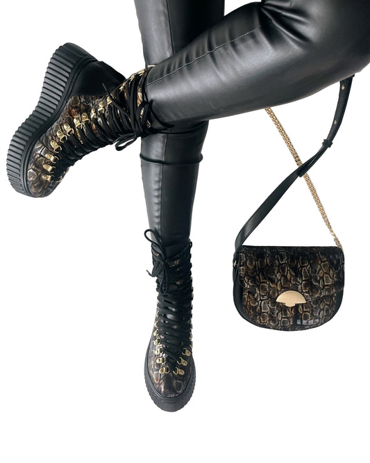 Bocanci Ruby din piele naturală cu talpă ortopedică: · Culoare : piele print reptila maro...