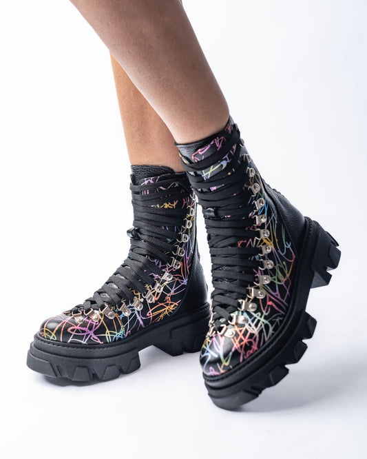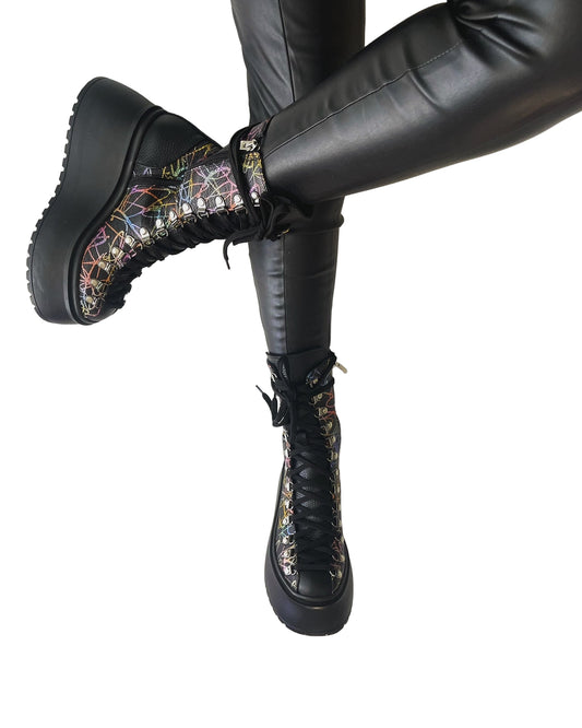 Bocanci Ruby din piele naturală cu talpă ortopedică: · Culoare : piele print multicolor /accesorii...
