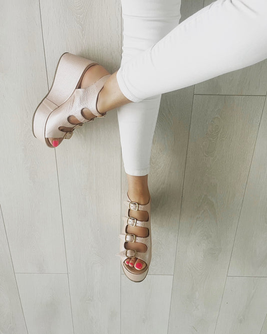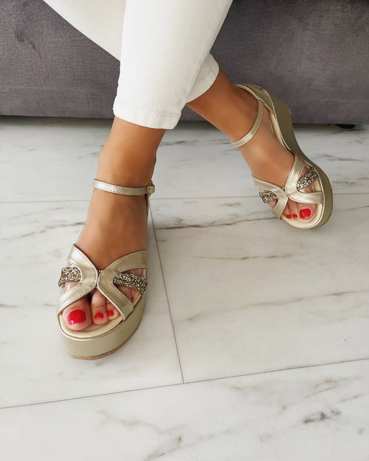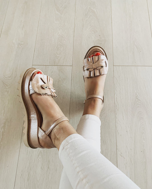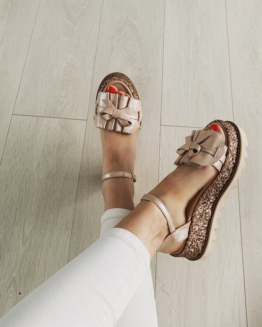 Sandale Esme Compozitie : 100% Piele naturala /captusela piele naturala Culoare mostra: Piele aurie /glitter...