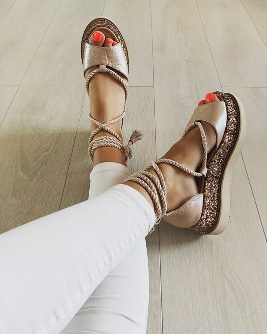 Sandale Martina cu talpă înaltă și șnur de susținere Compozitie : Piele Naturala interior/ exetrior ...