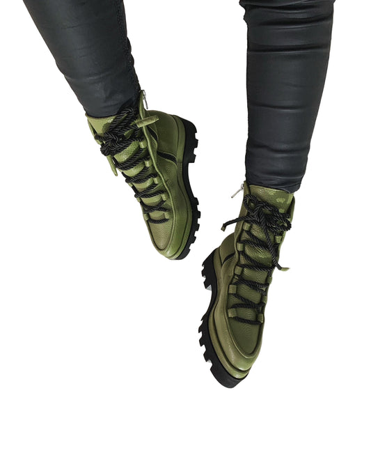 Bocanci Romina din piele naturală cu talpă ortopedică: · Culoare : piele kaki bizonata · ...