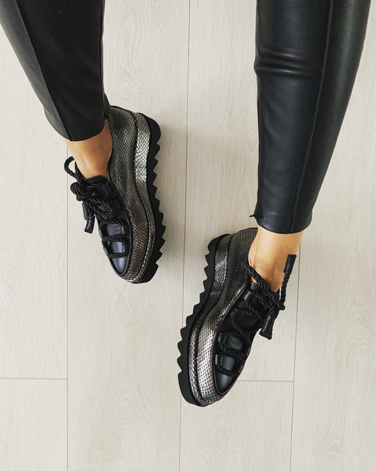 Pantofi Kristin Culoare mostra : piele neagra / piele gri-negru aspect impletit Culoare talpa : bej...