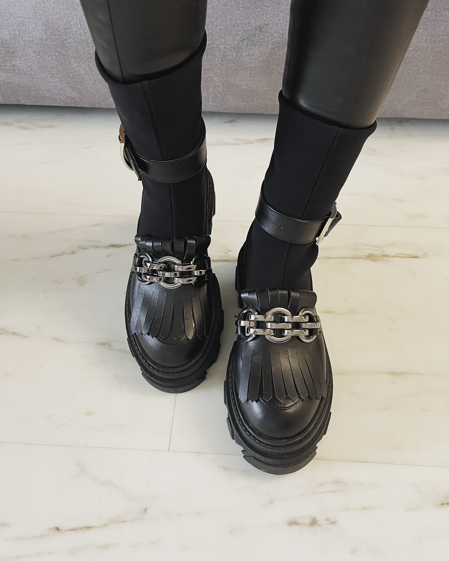 · Culoare : piele neagra / stretch negru / accesoriu negru