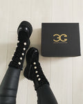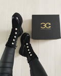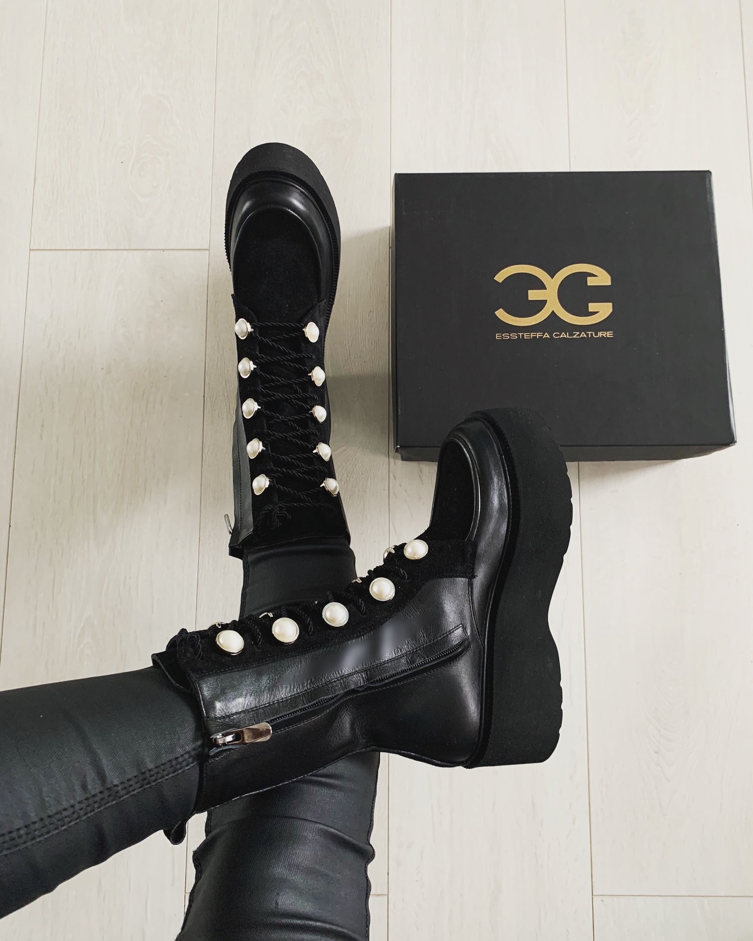 · Culoare : piele neagra / piele intoarsa neagra / accesorii perle albe