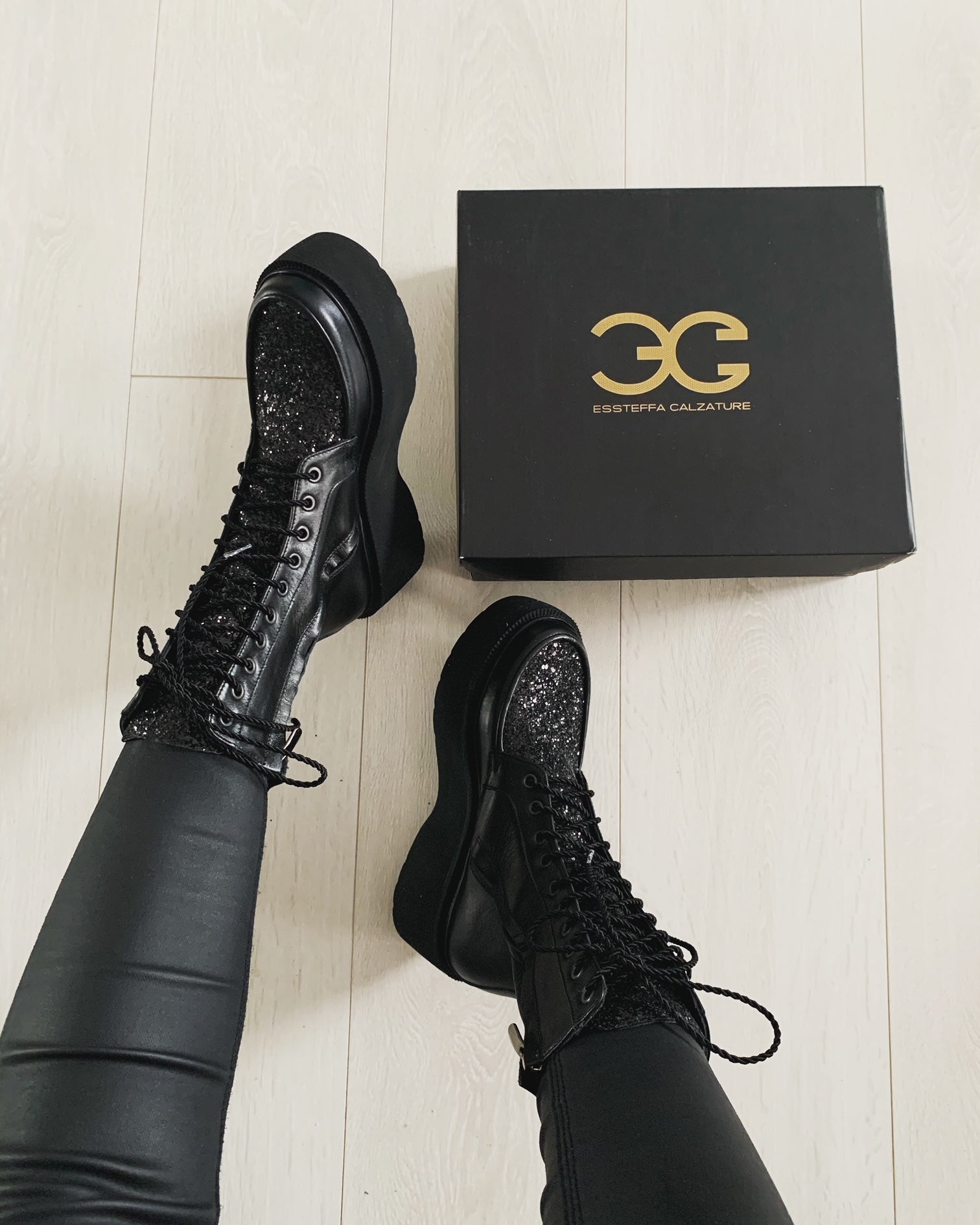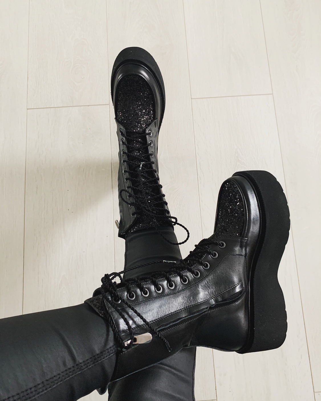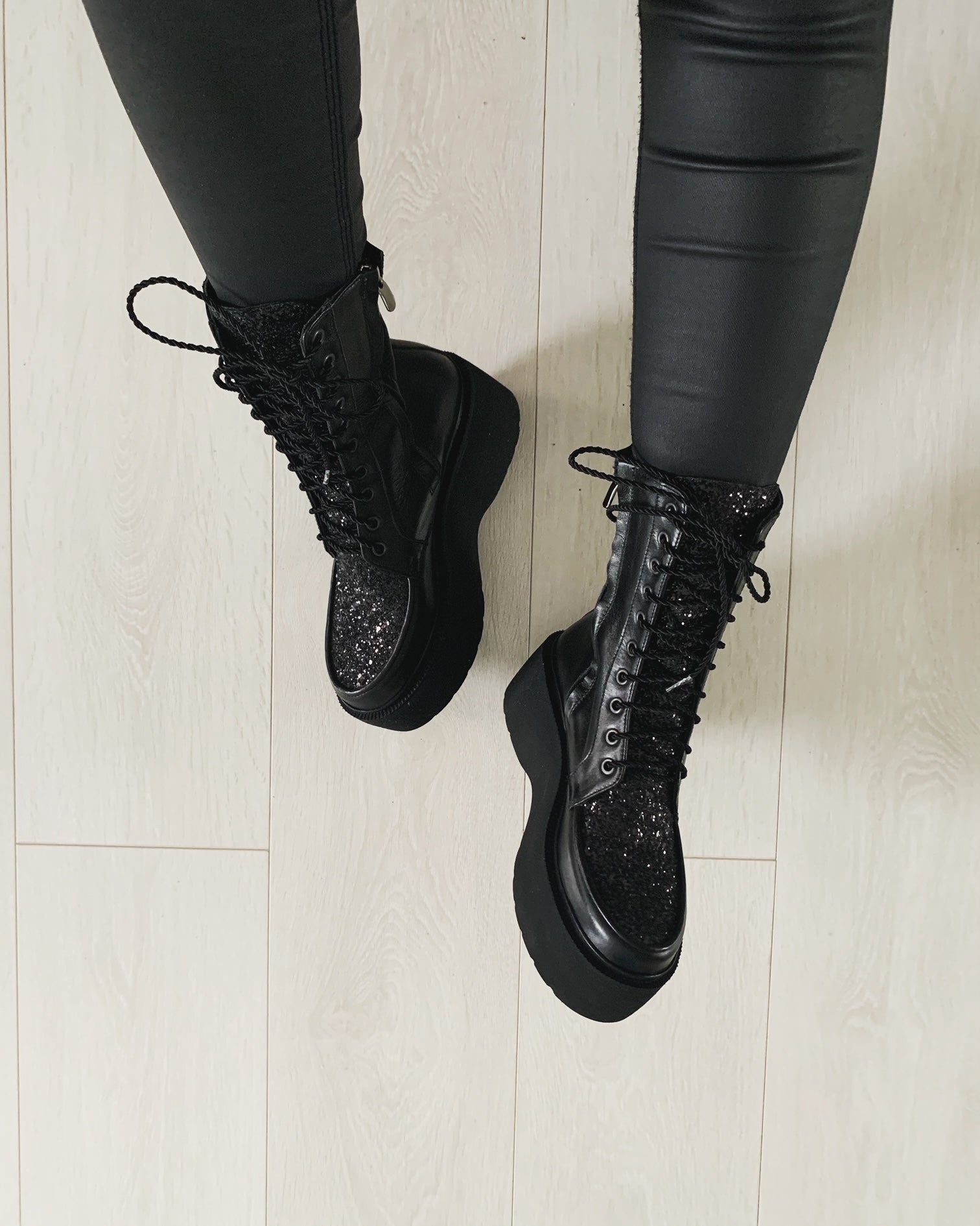 · Culoare : piele neagra / glitter negru