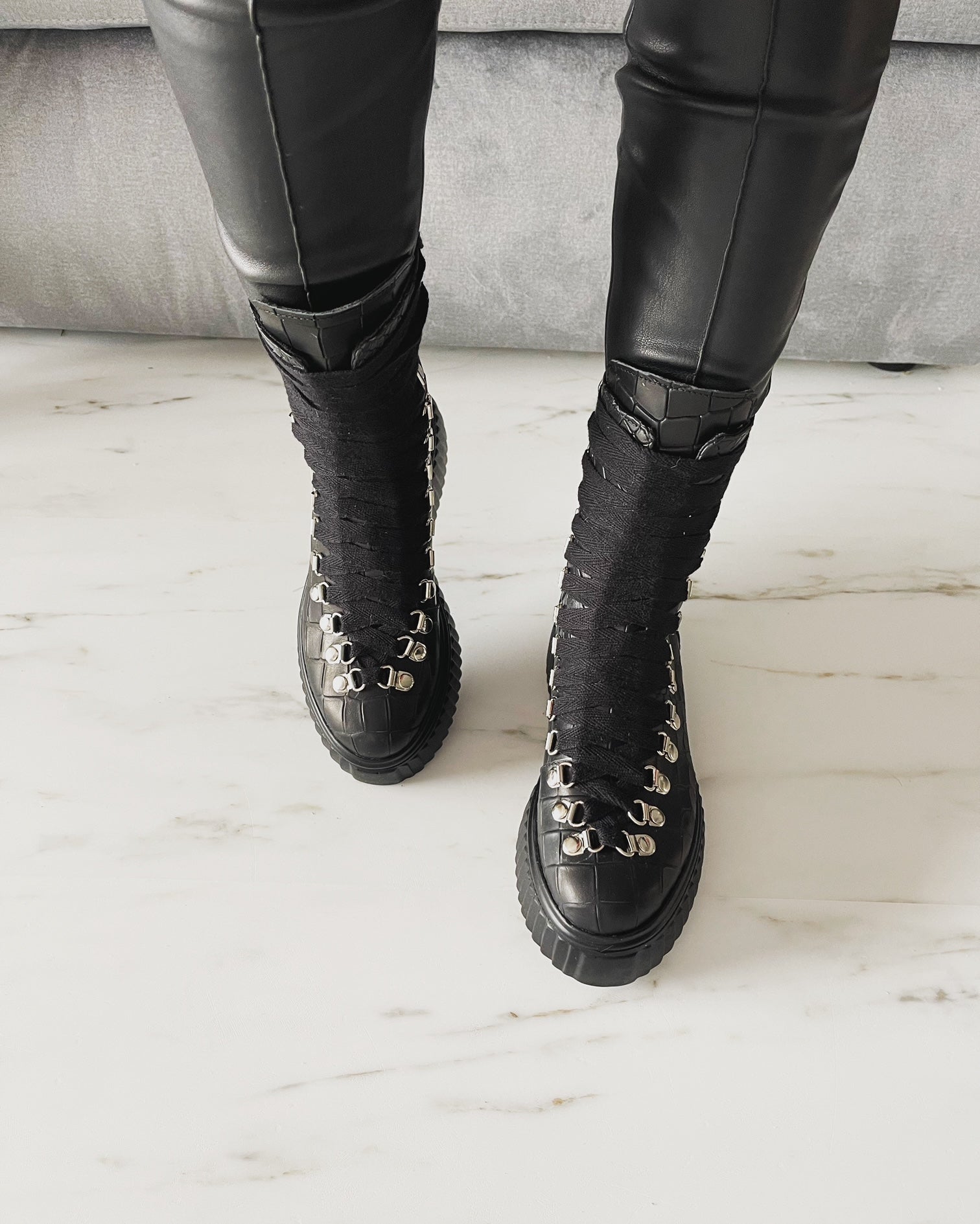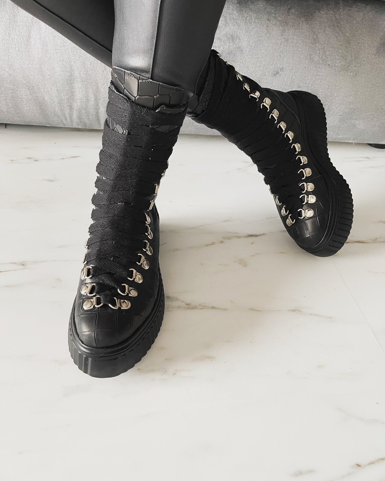 · Culoare : piele croco neagra / accesorii argintii