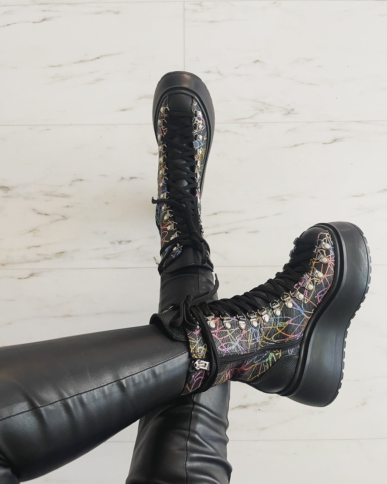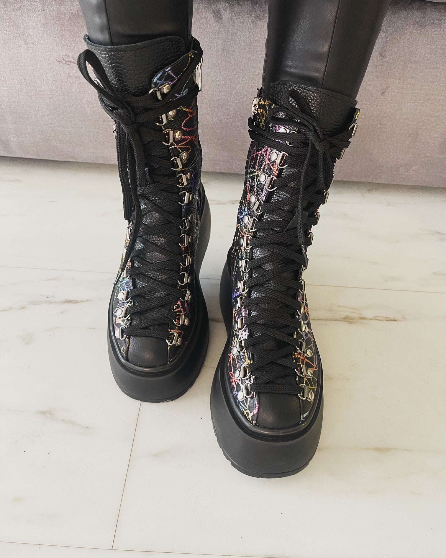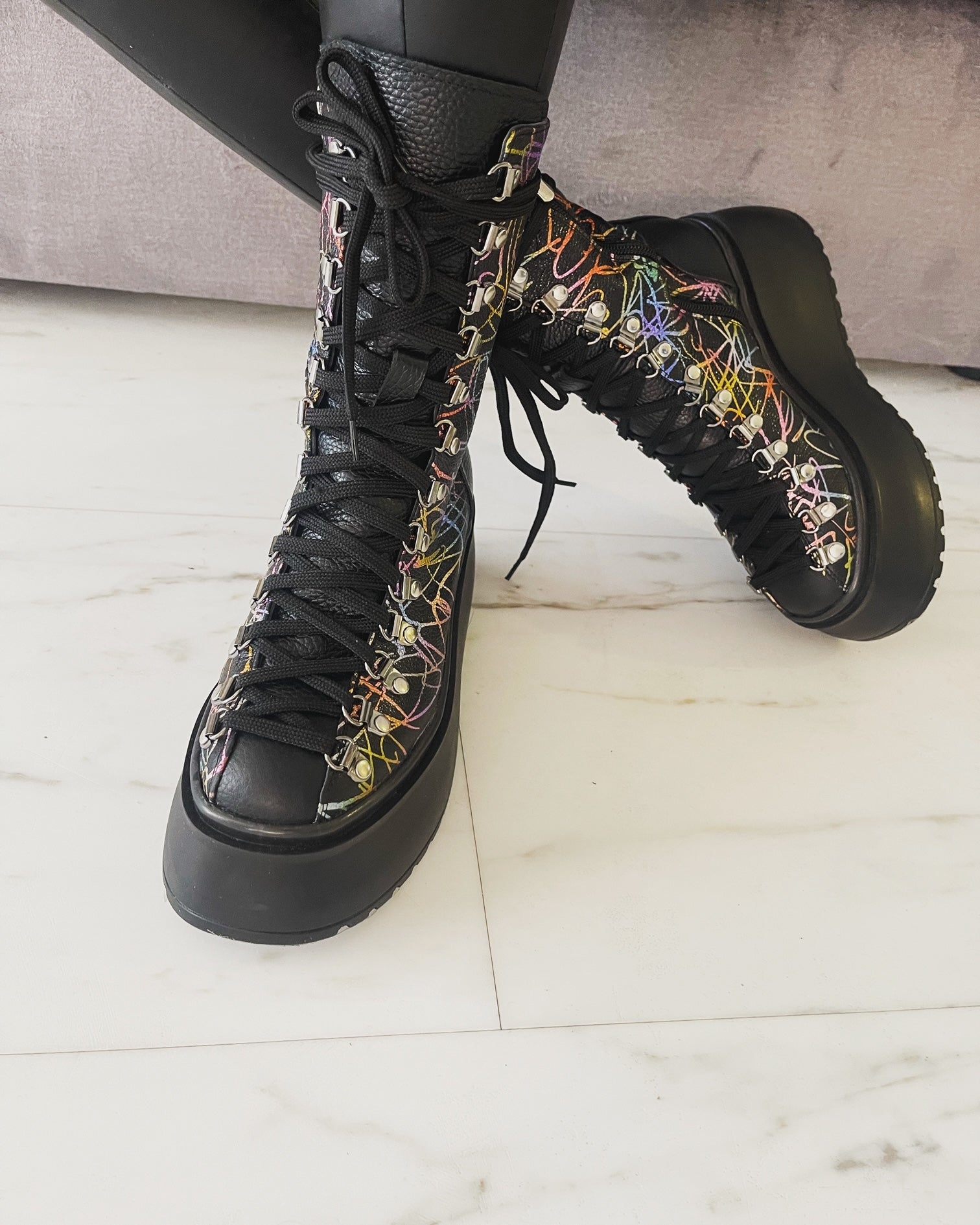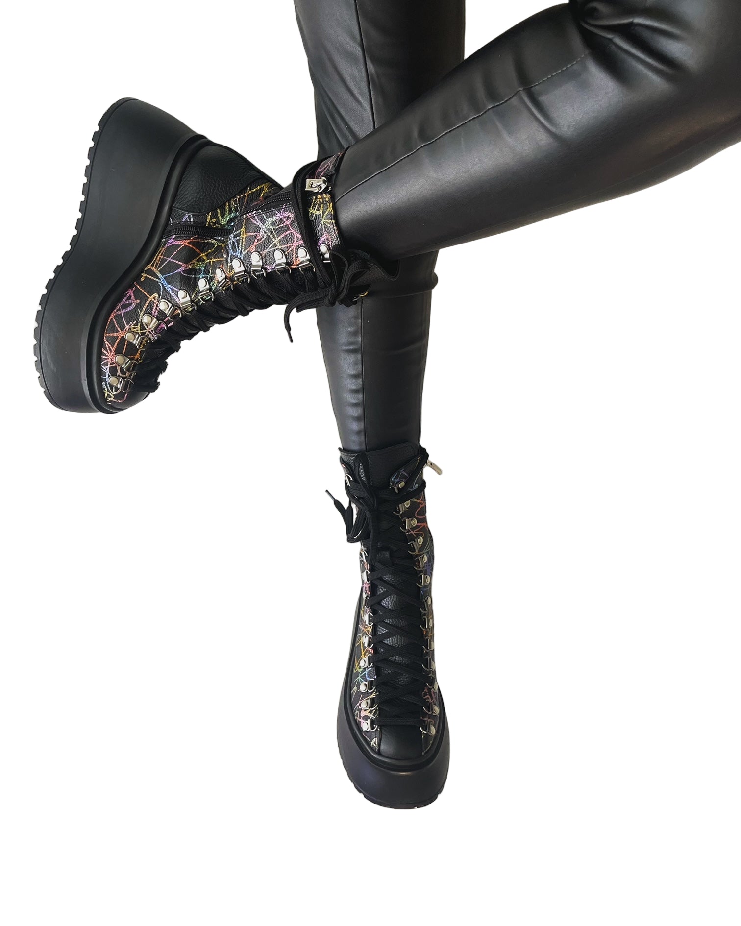 · Culoare : Piele bizonata print grafitti multicolor/ accesorii argintii
