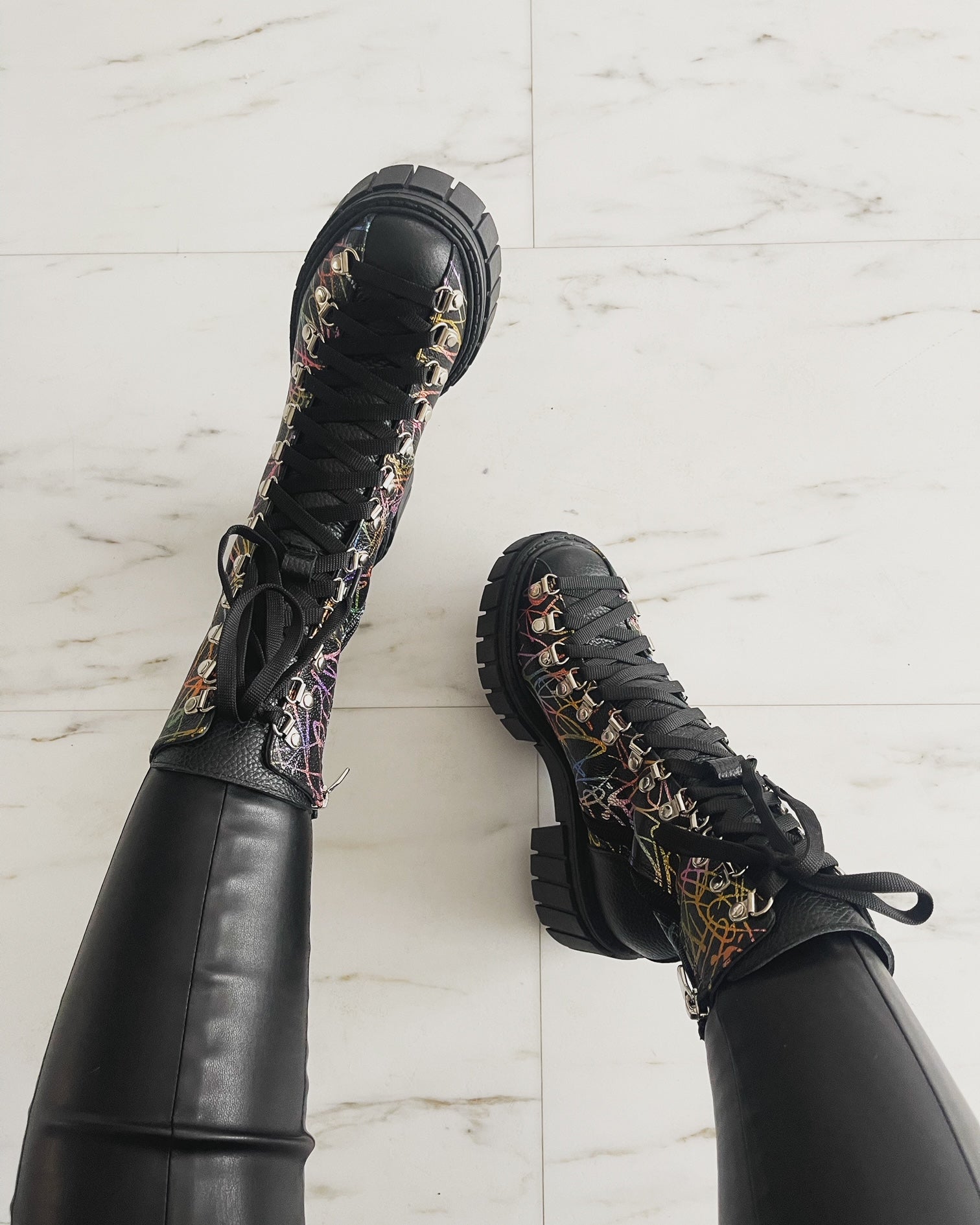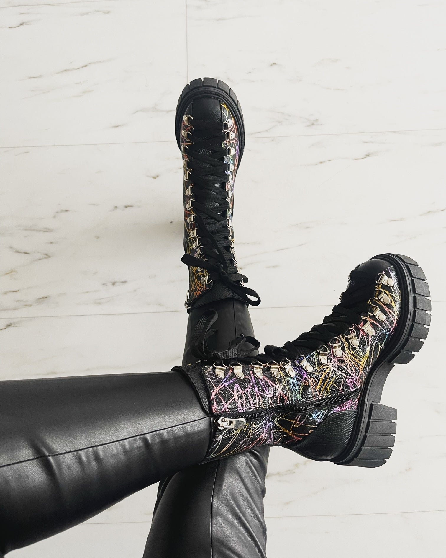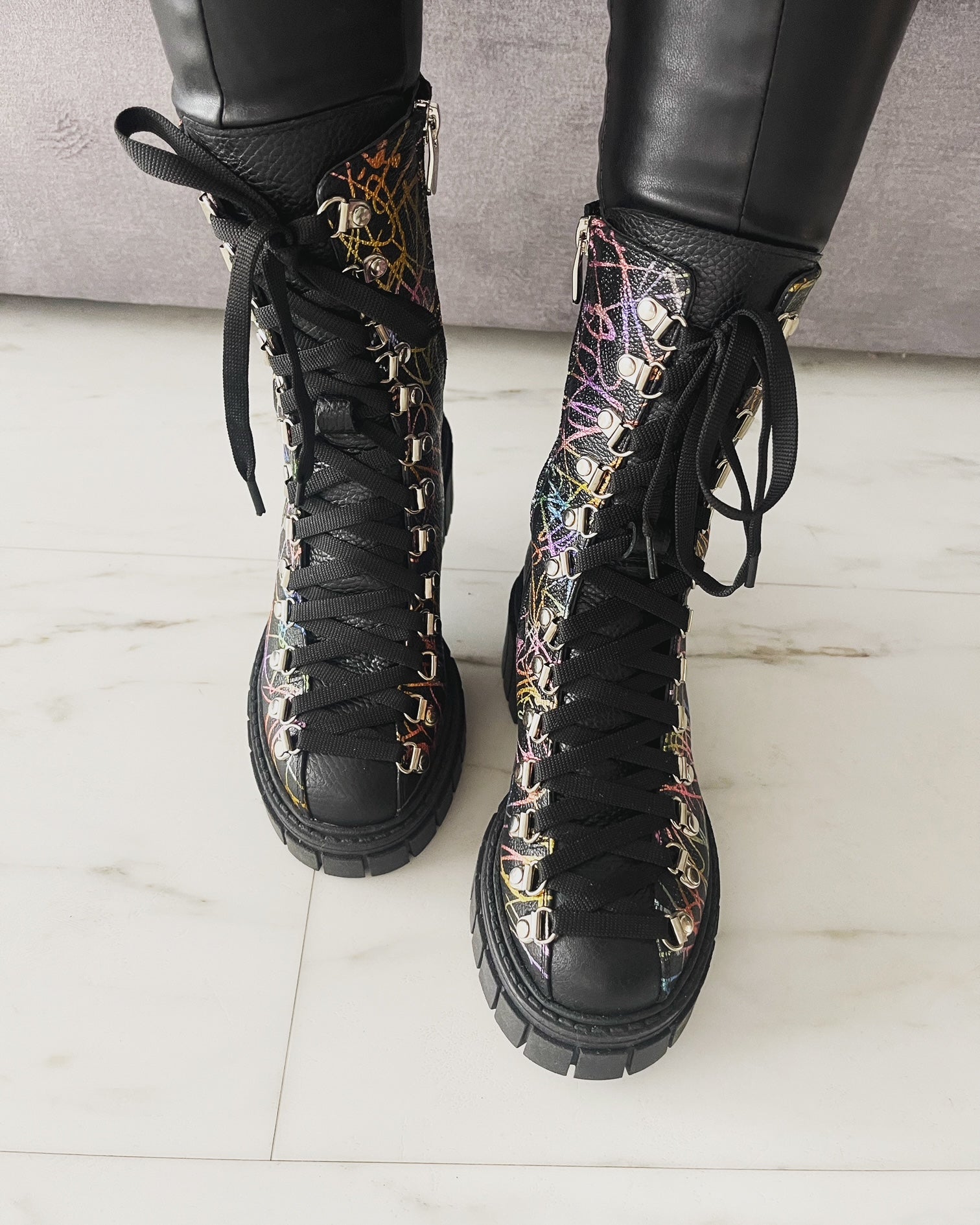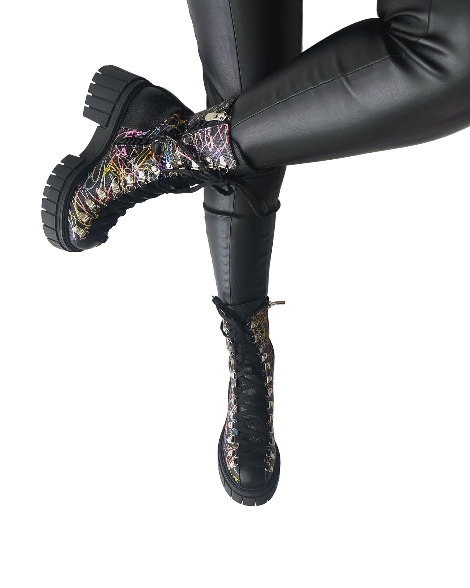 · Culoare : Piele bizonata print grafitti multicolor/ accesorii argintii
