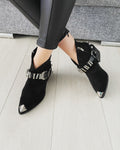 Ciocate Doris din piele naturală cu toc de 5 cm și accesoriu metalic detasabil