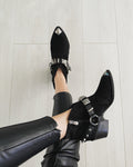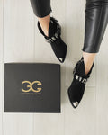 Îndrăznește să ieși în evidență cu ciocatele Doris, realizate din piele naturală de înaltă calitate, ce îmbină farmecul western cu rafinamentul urban. Designul versatil este completat de un accesoriu metalic detașabil la gleznă, care adaugă un accent sofisticat și permite personalizarea ținutei în funcție de moment.