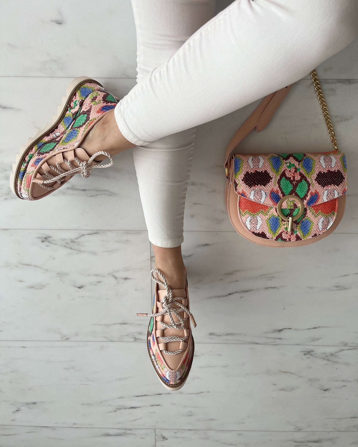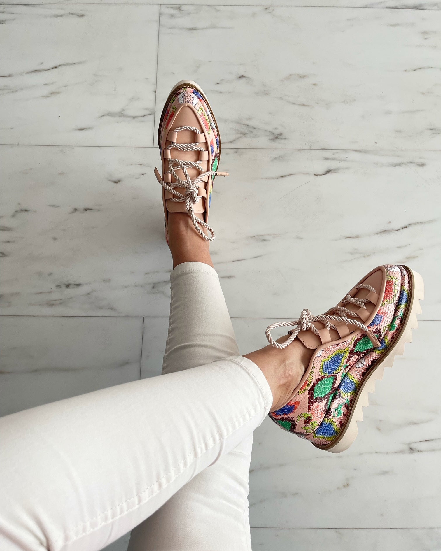 Culoare mostra: Piele Print sarpe multicolor/ siret bej