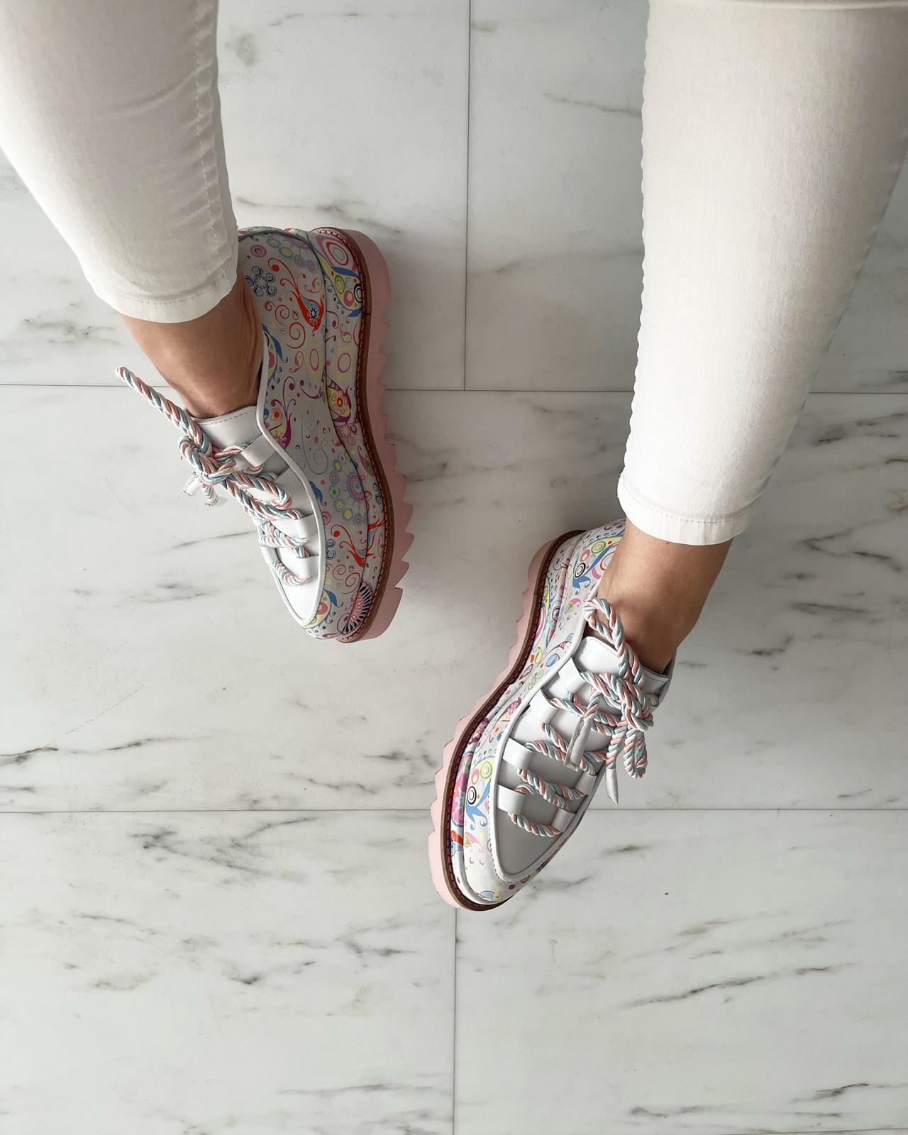 Culoare mostra: Piele alba imprimeu multicolor