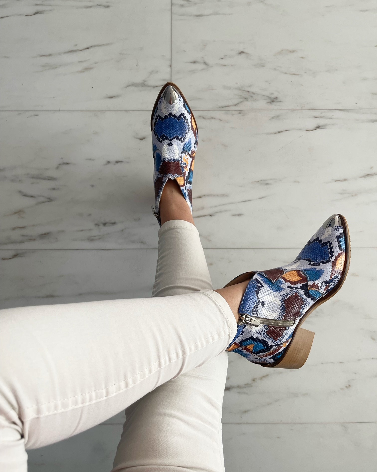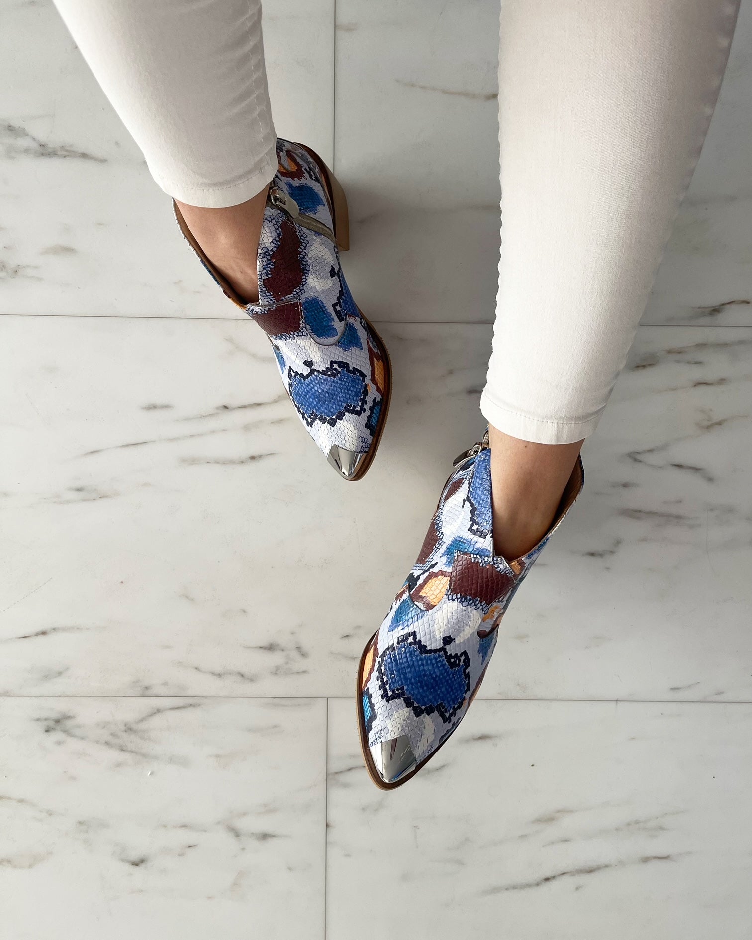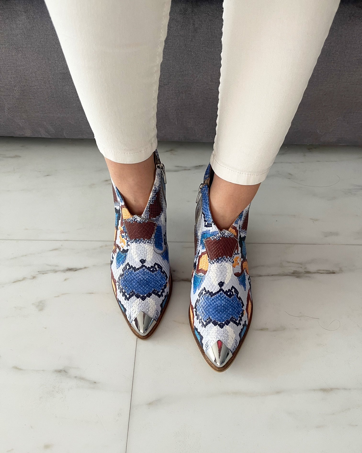 · Culoare mostra : piele print sarpe albastru-maro-portocaliu