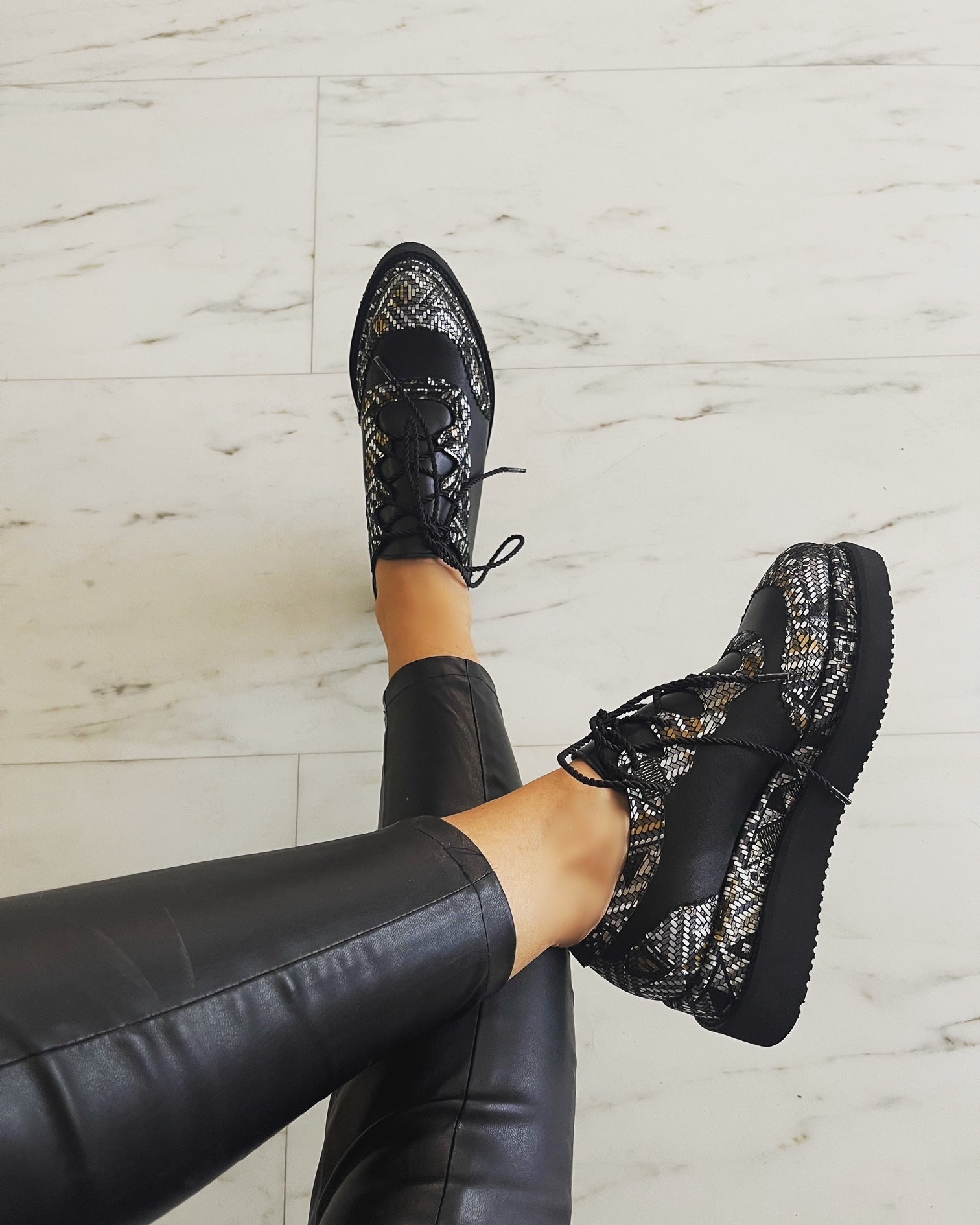 Culoare mostra: Piele neagra/ piele neagra print geometric