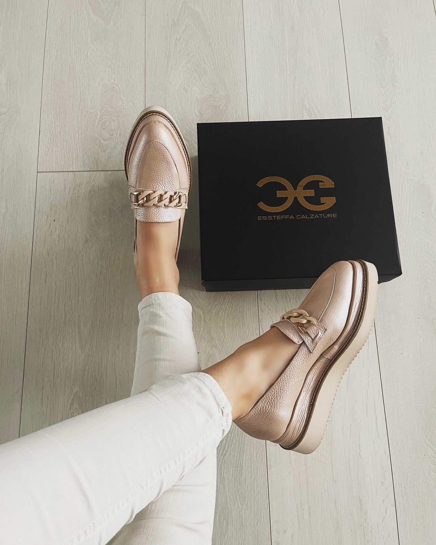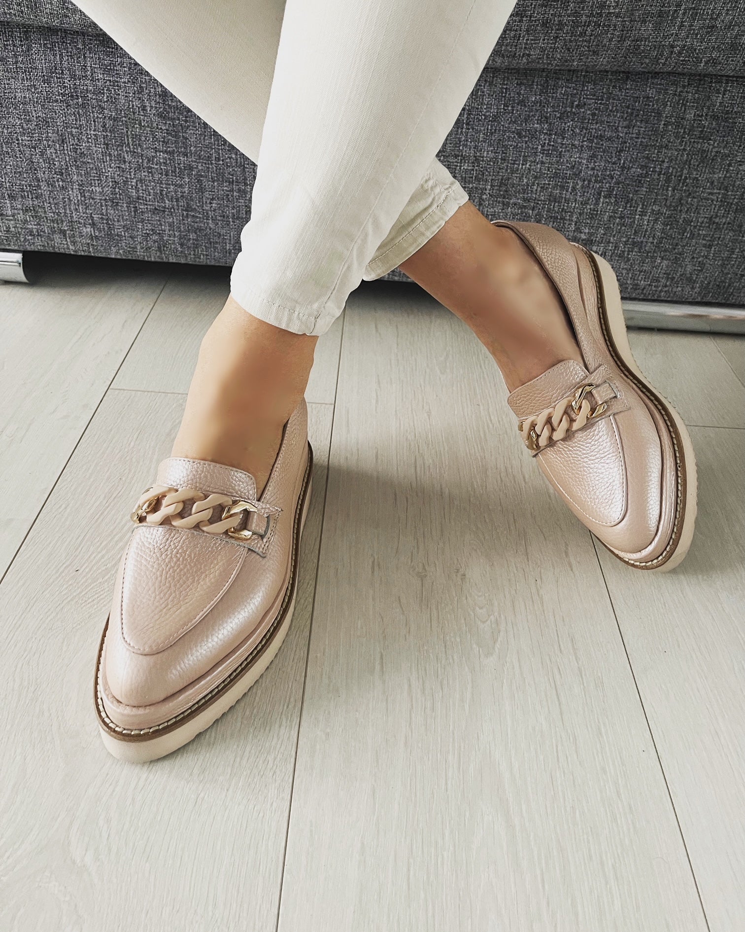 Mocasini Eliza din piele naturală sunt o alegere versatilă și elegantă, potrivită atât pentru ținute de zi cu zi, cât și pentru birou. Disponibili în diverse culori și texturi, acești mocasini combină confortul cu un design modern.