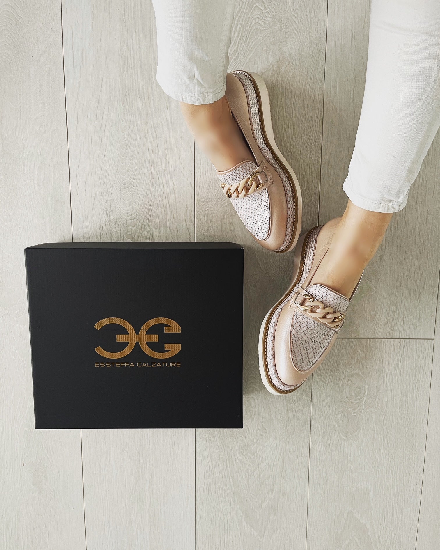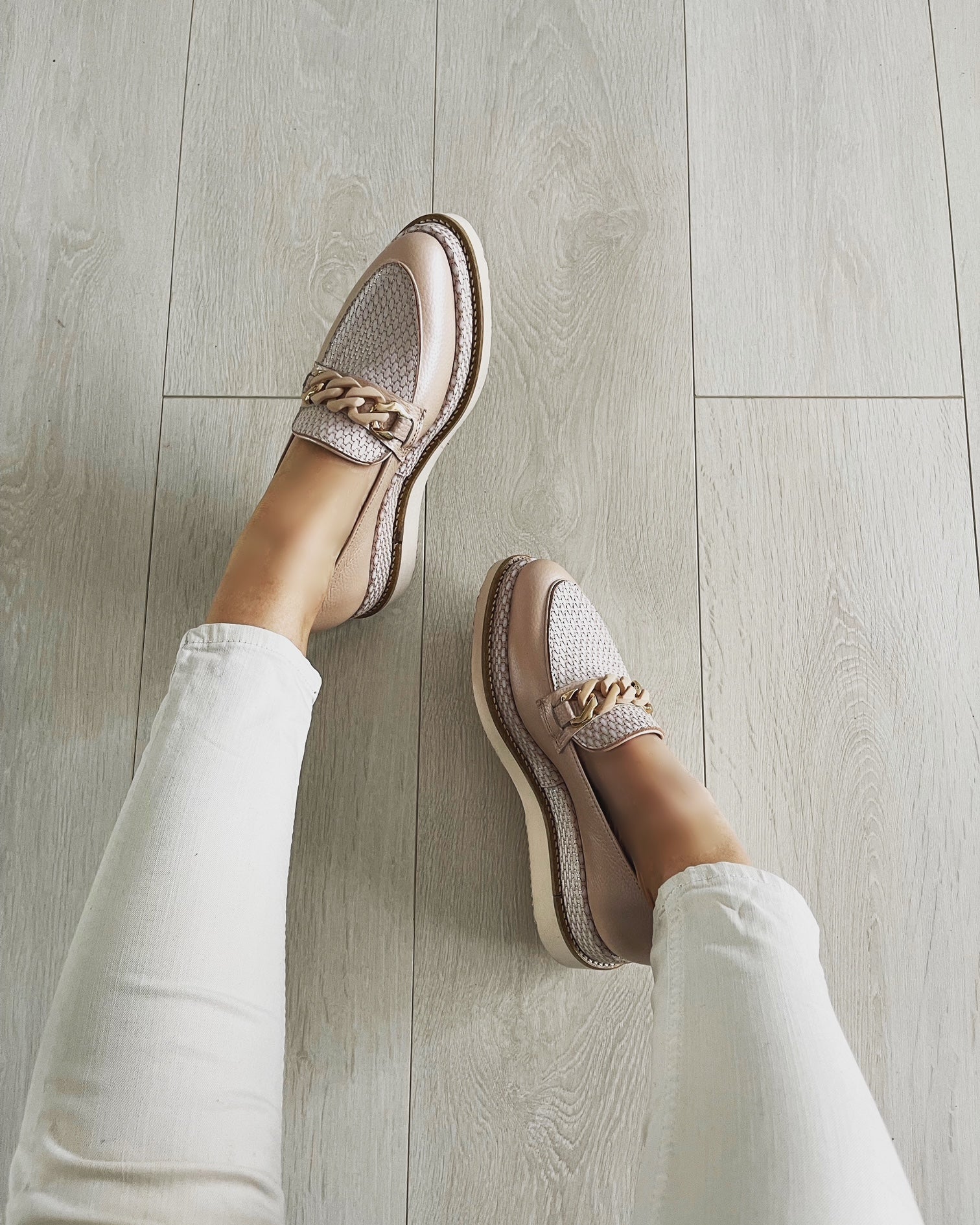 Culoare mostra: Piele nude-roze/ piele nude -roze aspect impletit/ lant roze-auriu
