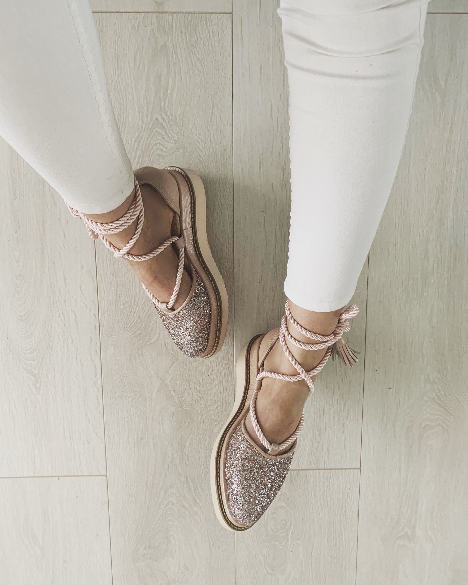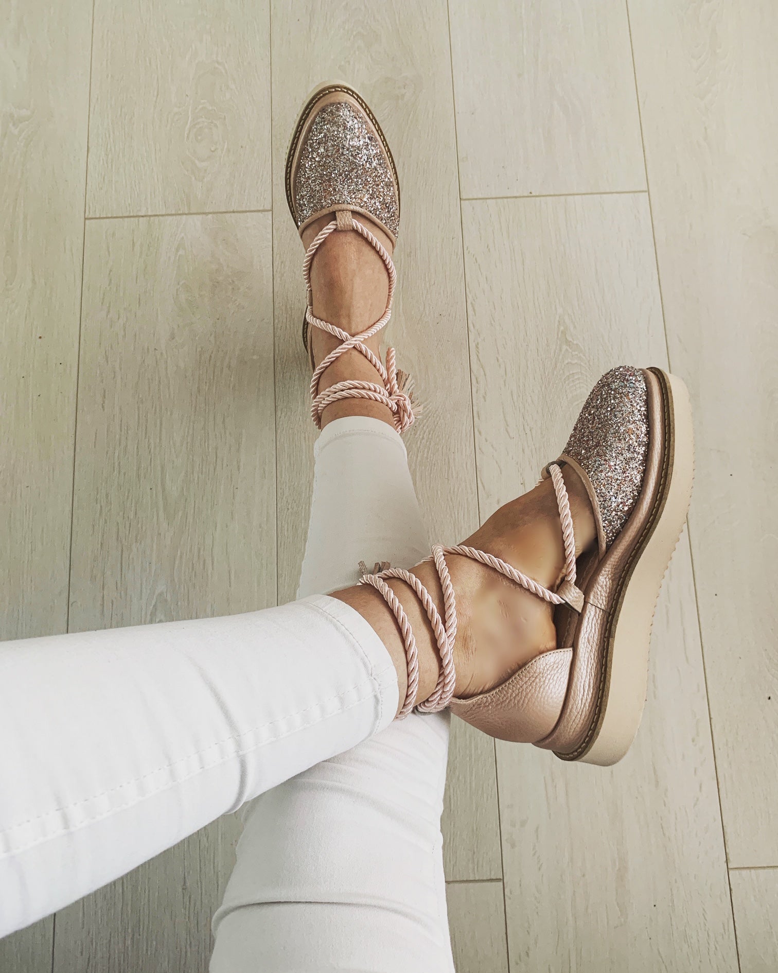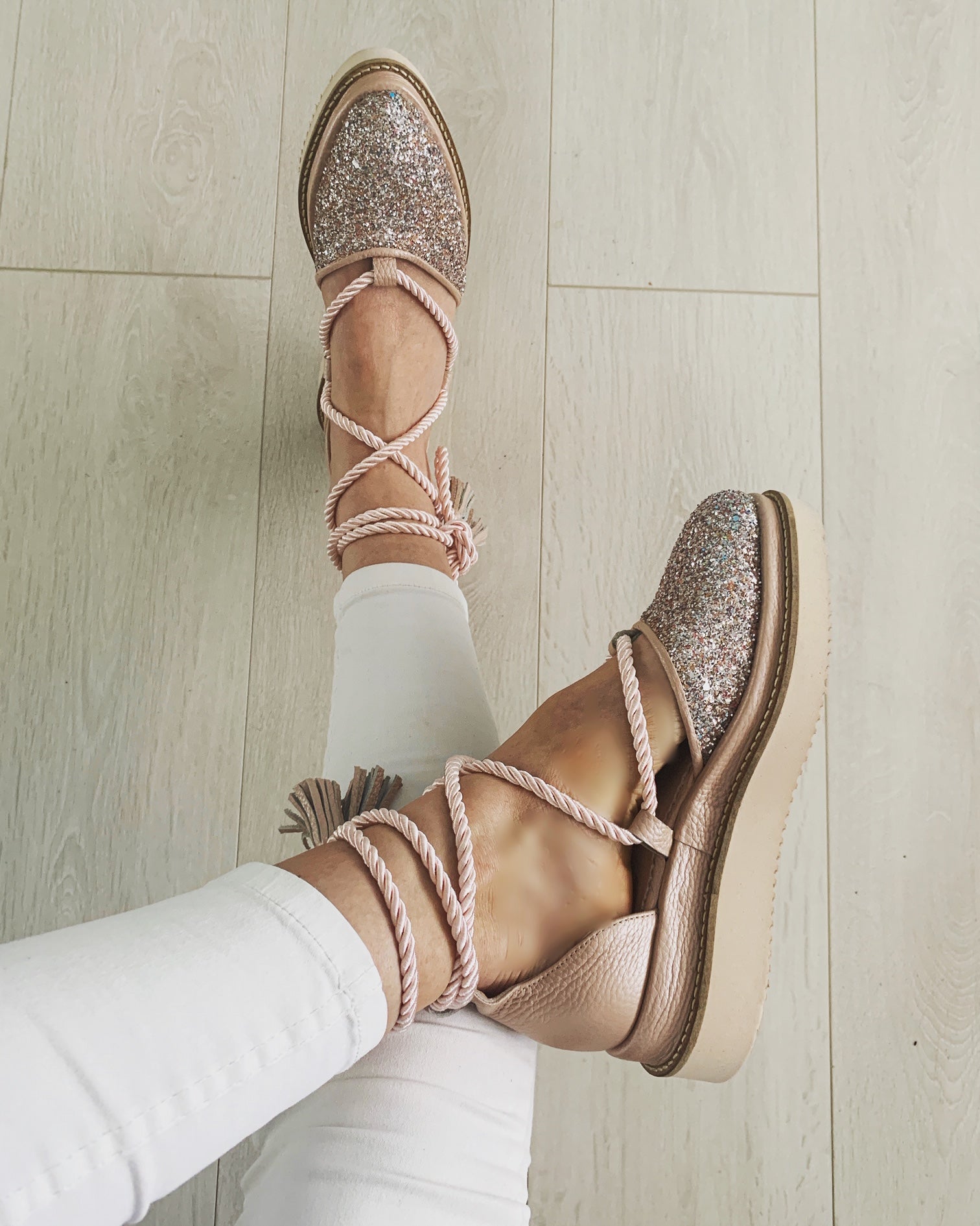 Culoare : Glitter roze/ Piele nude-roze/ platforma talpa piele nude-roze/ siret roze