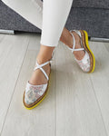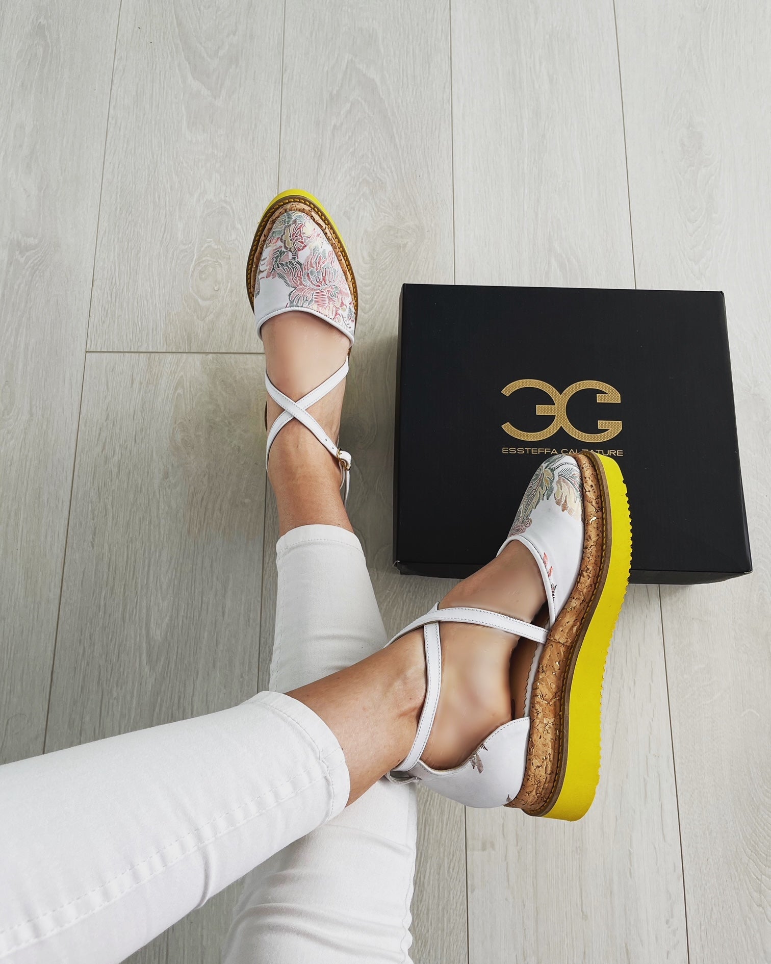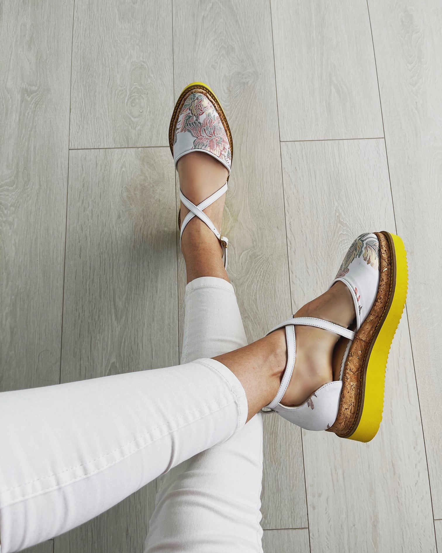 Culoare : Piele alba cu print floral / Piele alba / platforma pluta bej