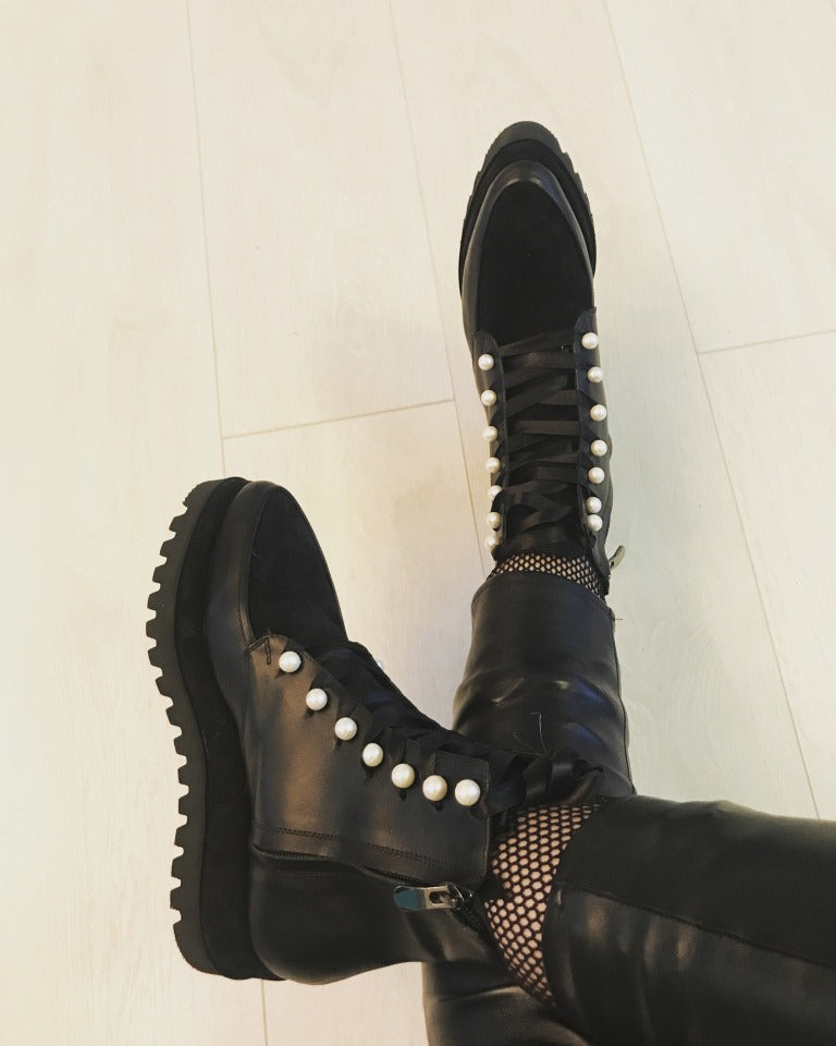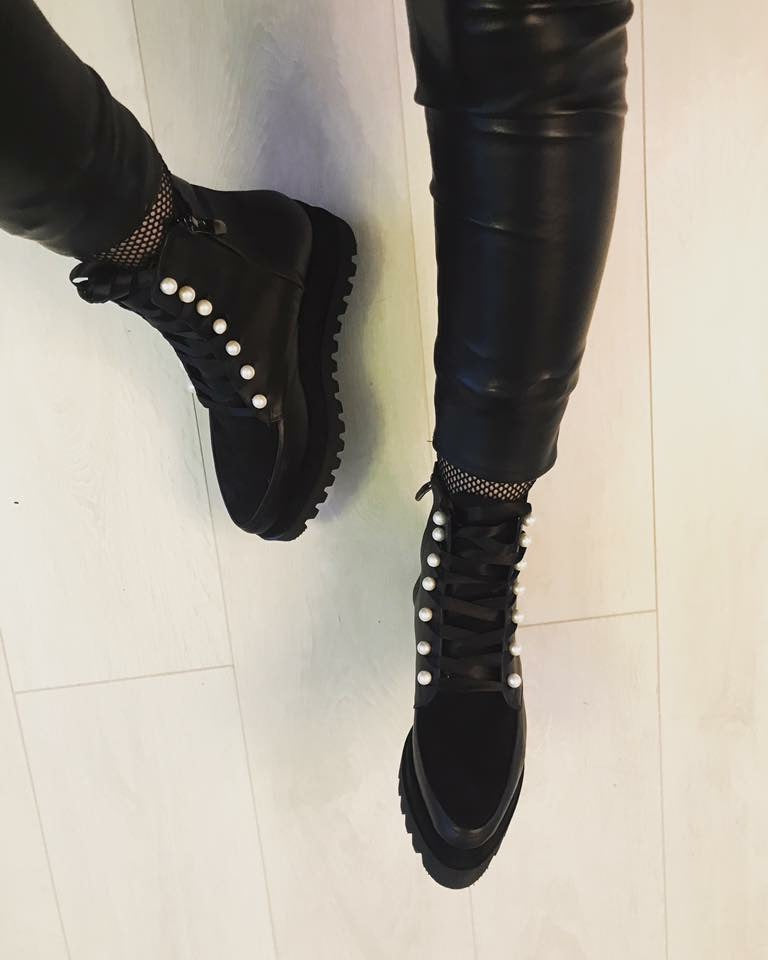 · Culoare : Piele neagra/ piele intoarsa neagra / perle