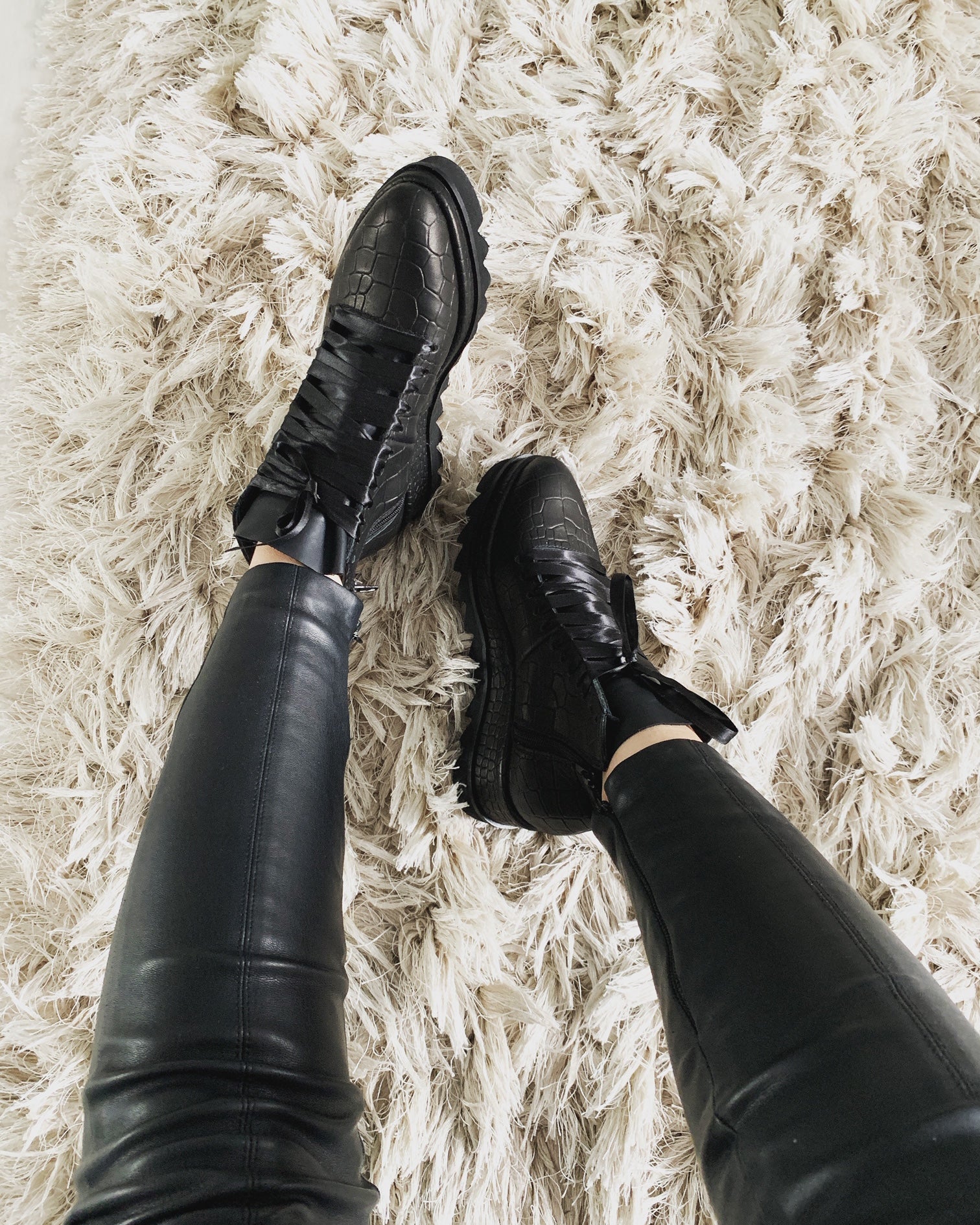 - Deoarece pielea cu care este căptuşită încălţămintea nu a fost tratată chimic în mod excesiv pentru fixarea pigmentului (cu scopul protejării pielii dumneavoastră), există riscul migrării culorii. Recomandăm purtarea ciorapilor asortaţi sau de culoare închisă.