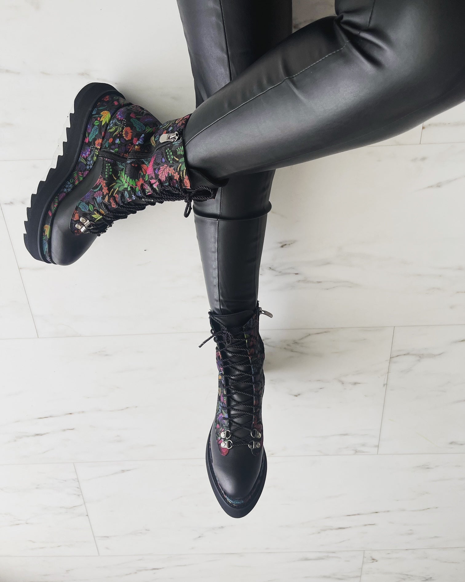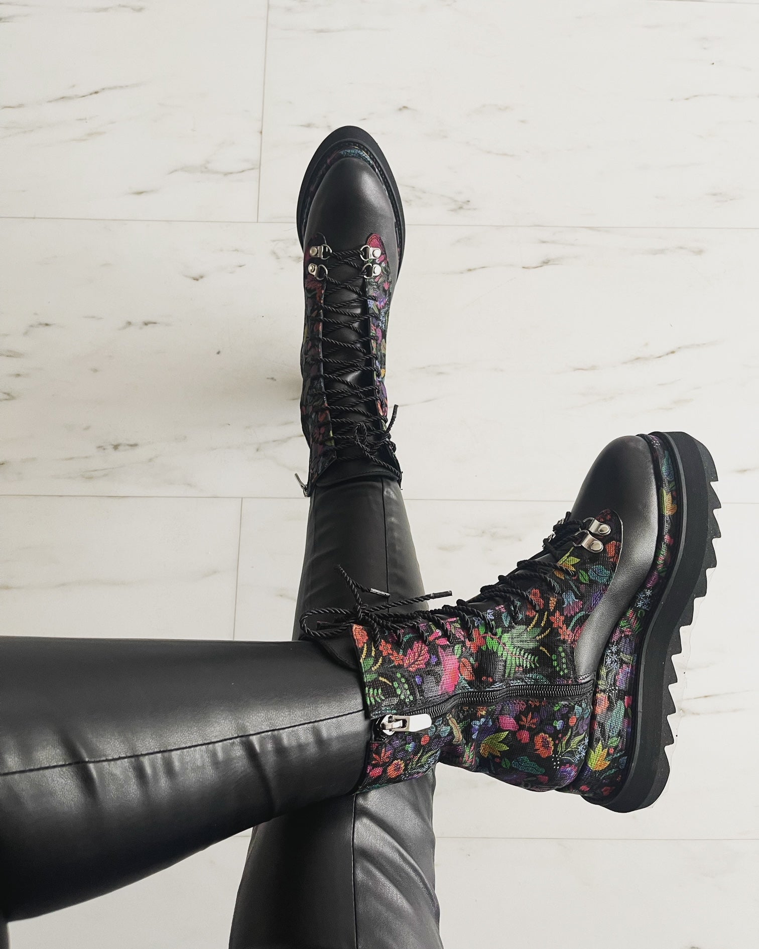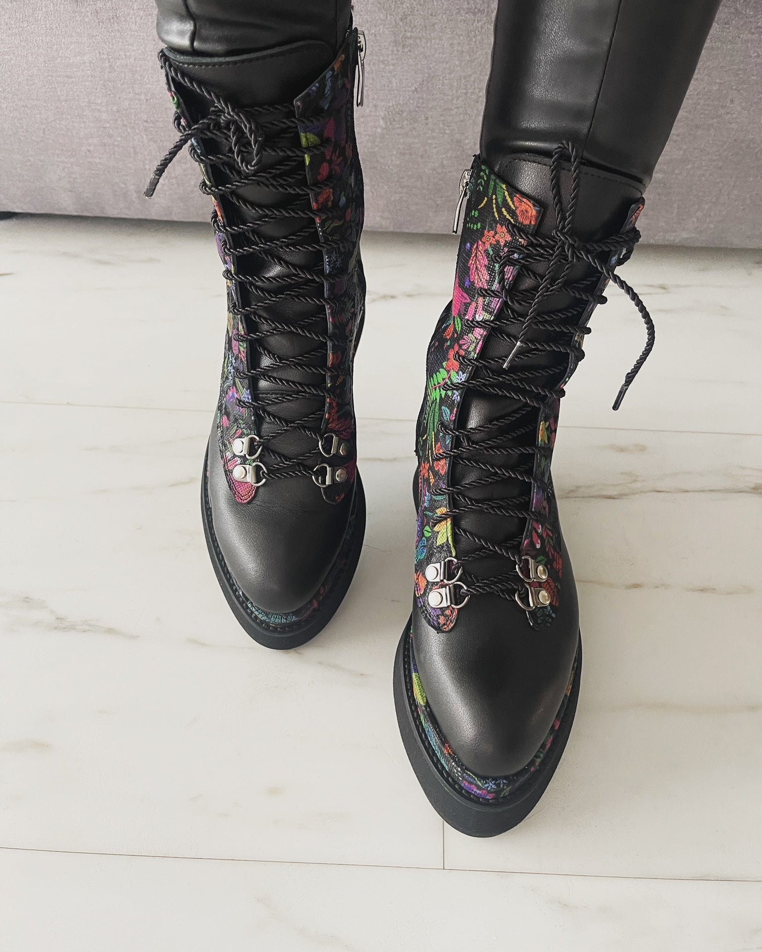 · Culoare : Piele neagra/ piele print floral