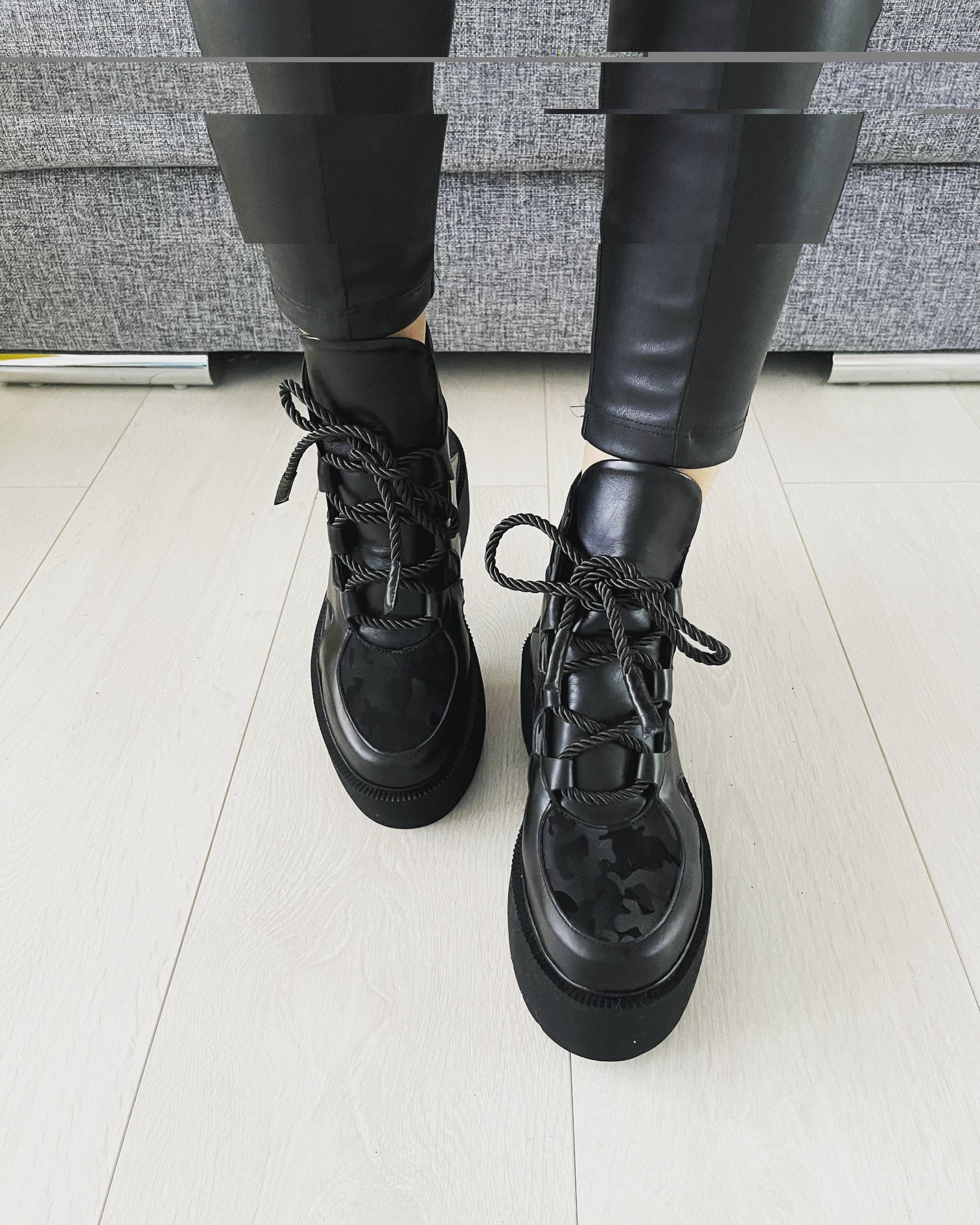 · Culoare : piele neagra camuflaj / piele intorsa neagra