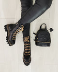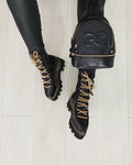 · Culoare : Piele neagra/ imbracaminte talpa piele neagra detalii maro
