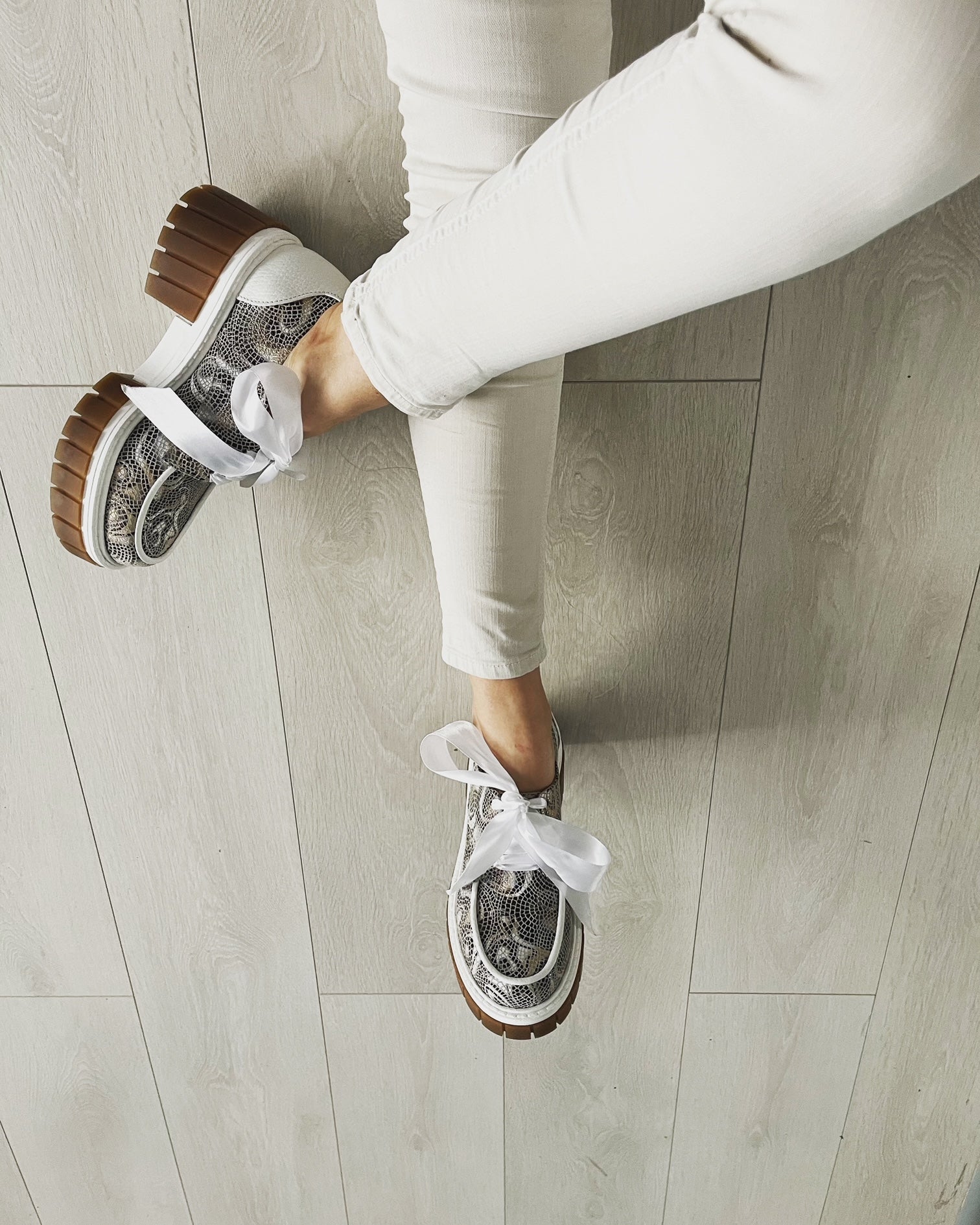 - Deoarece pielea cu care este căptuşită încălţămintea nu a fost tratată chimic în mod excesiv pentru fixarea pigmentului (cu scopul protejării pielii dumneavoastră), există riscul migrării culorii. Recomandăm purtarea ciorapilor asortaţi sau de culoare închisă.