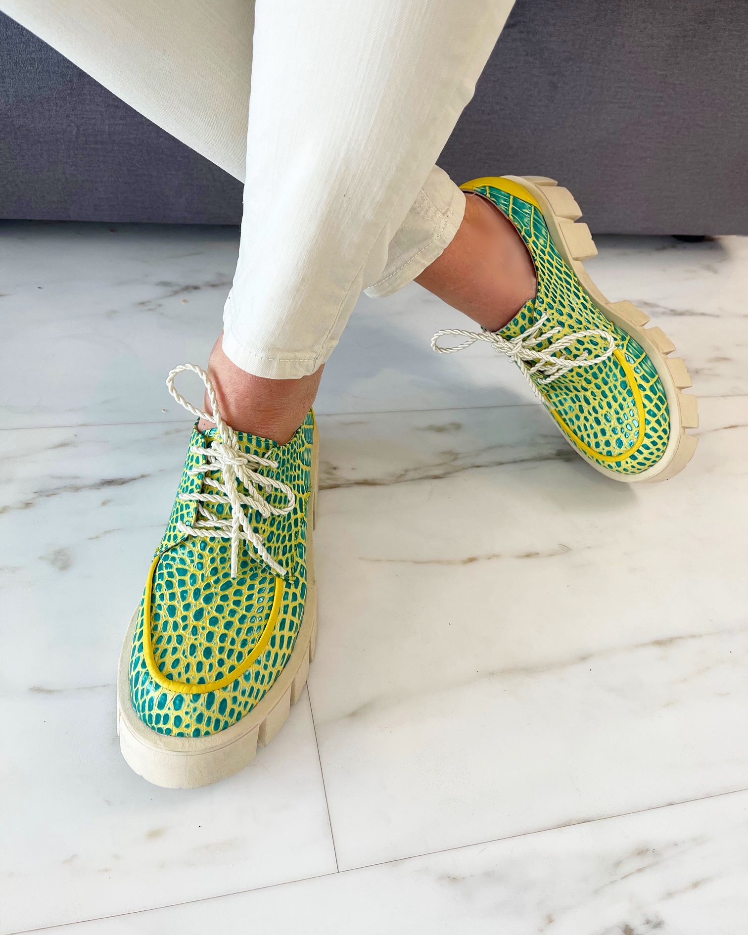 Culoare mostra : piele croco verde cu insertii galbene