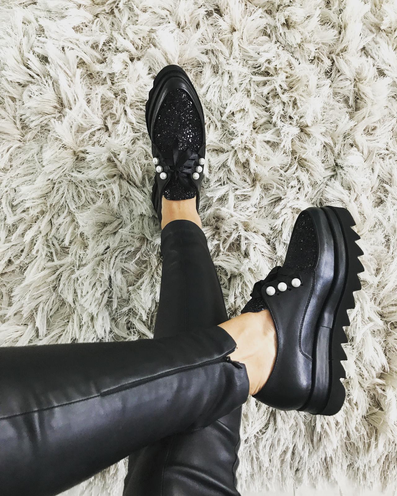 Culoare mostra: Piele neagra/ glitter negru/ perle