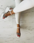 Designul cu baretă pe gleznă asigură o fixare fermă și adaugă un detaliu feminin și rafinat, ideal pentru a completa atât ținutele casual, cât și pe cele de ocazie. Materialele ușoare și flexibile îți oferă libertate de mișcare și confort pe tot parcursul zilei.