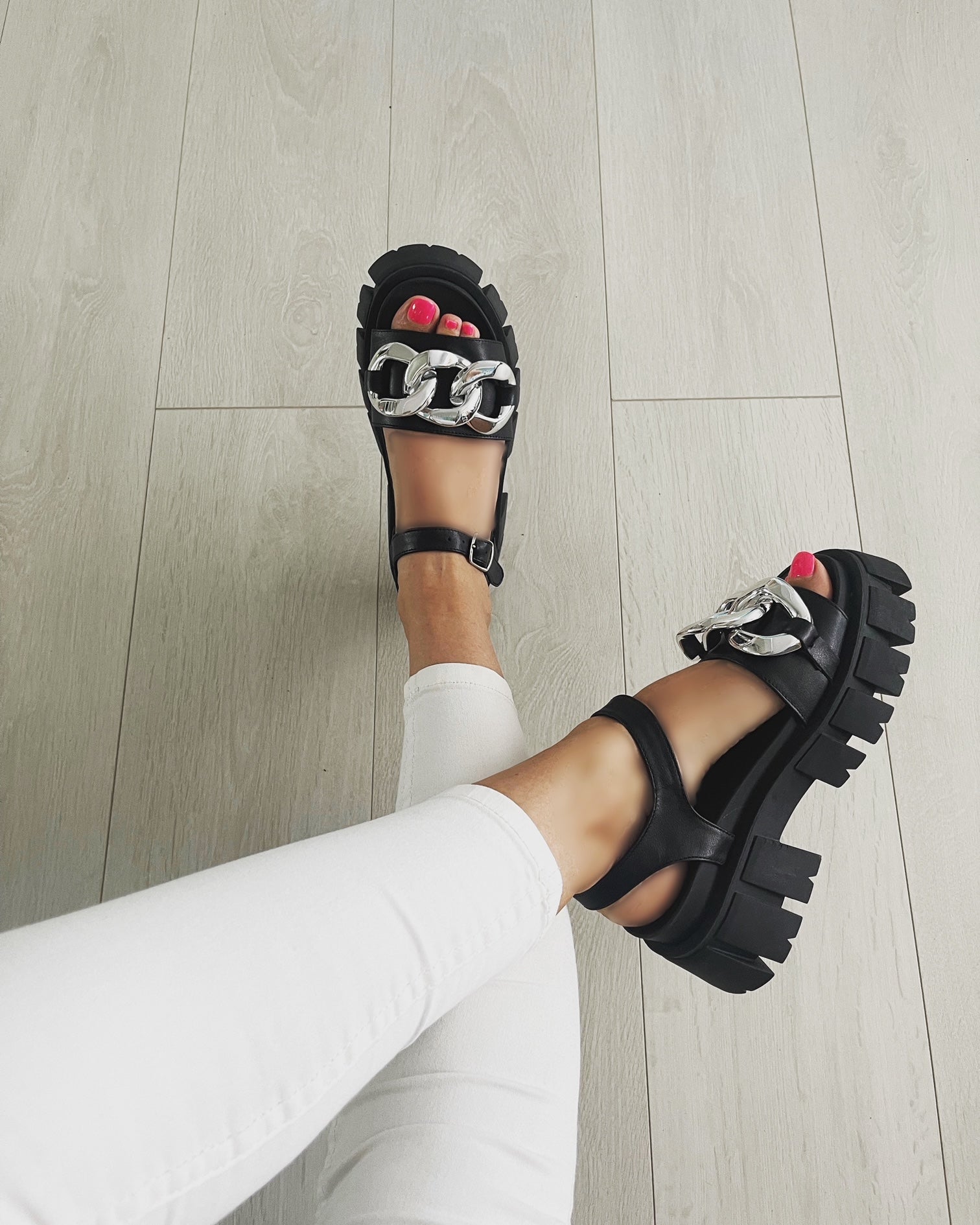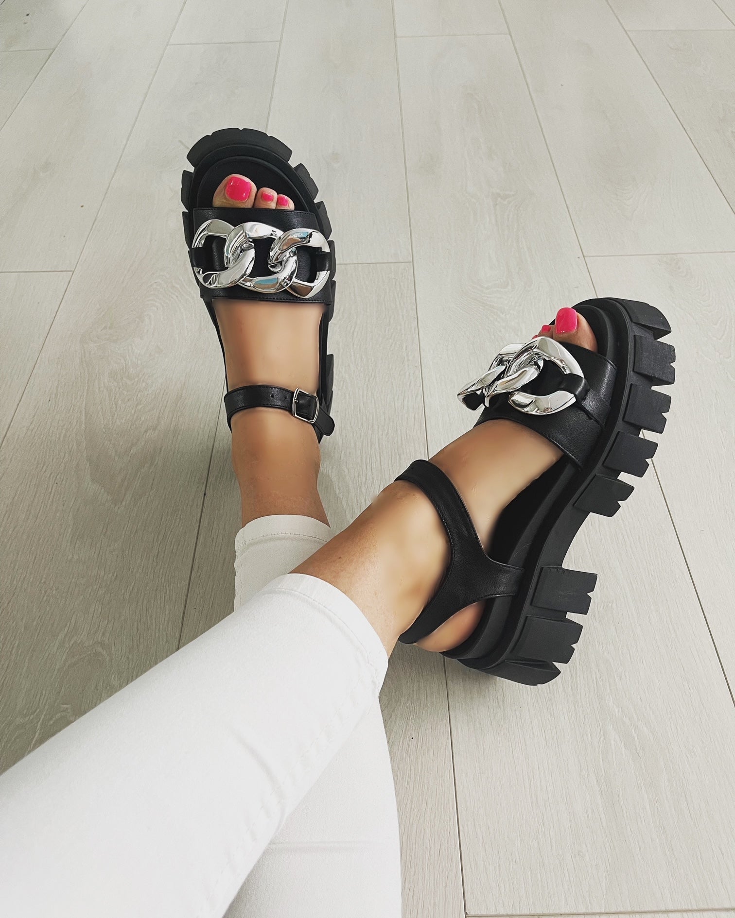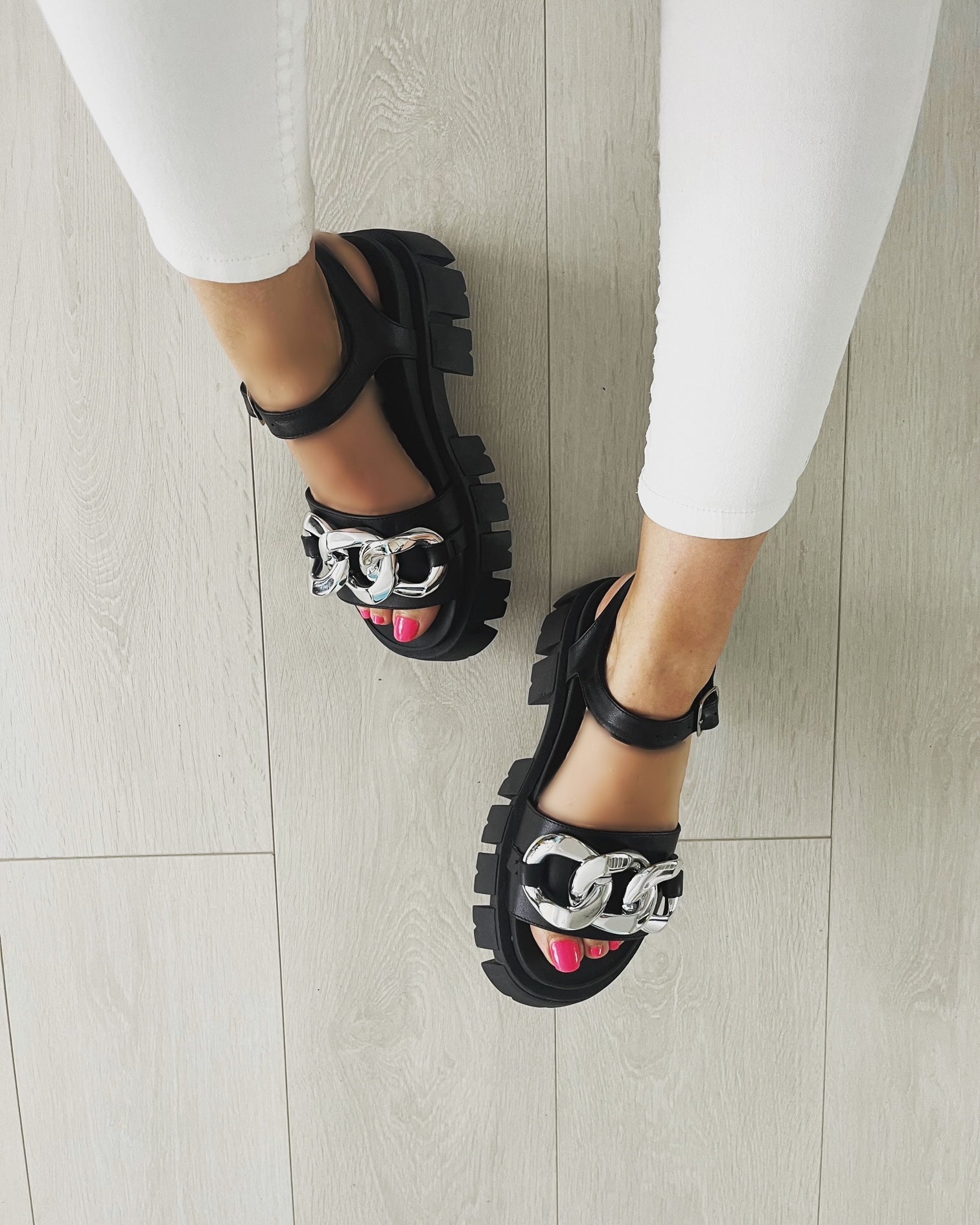 Sandale Lora din piele naturală cu lanț masiv și talpă înaltă – confort și stil urban