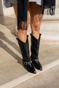 · Înălțime pe picior: 38 cm- Design lung, cu influențe western – Ideal pentru outfituri de toamnă-iarnă, rochii vaporoase sau ținute casual.