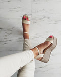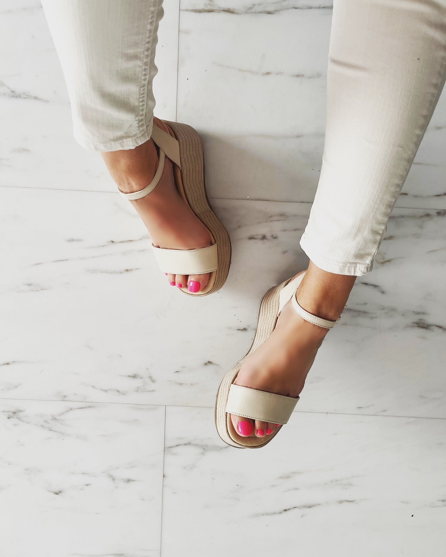 Designul cu baretă pe gleznă asigură o fixare fermă și adaugă un detaliu feminin și rafinat, ideal pentru a completa atât ținutele casual, cât și pe cele de ocazie. Materialele ușoare și flexibile îți oferă libertate de mișcare și confort pe tot parcursul zilei.