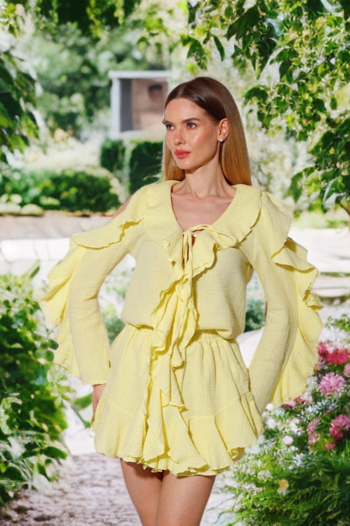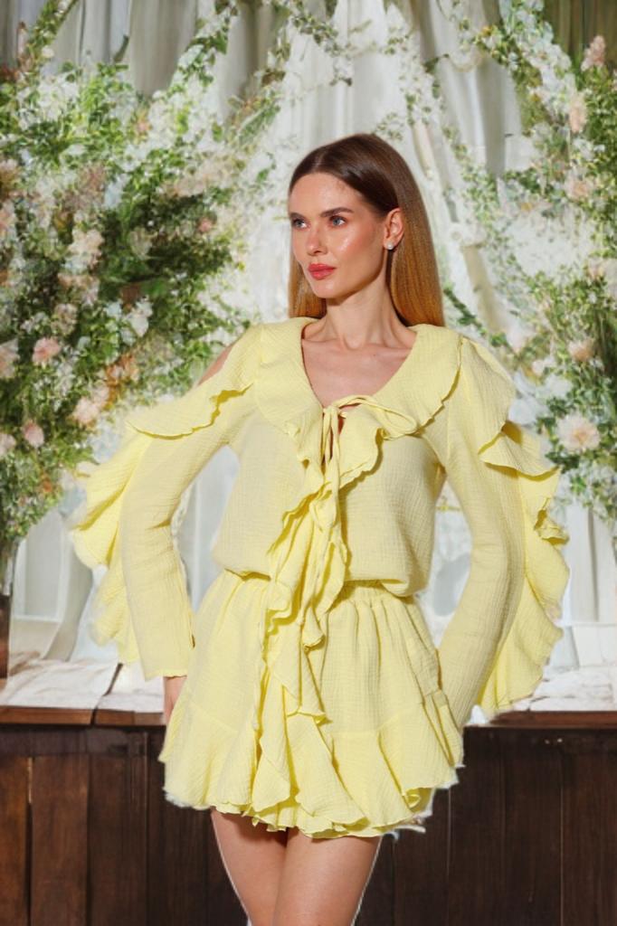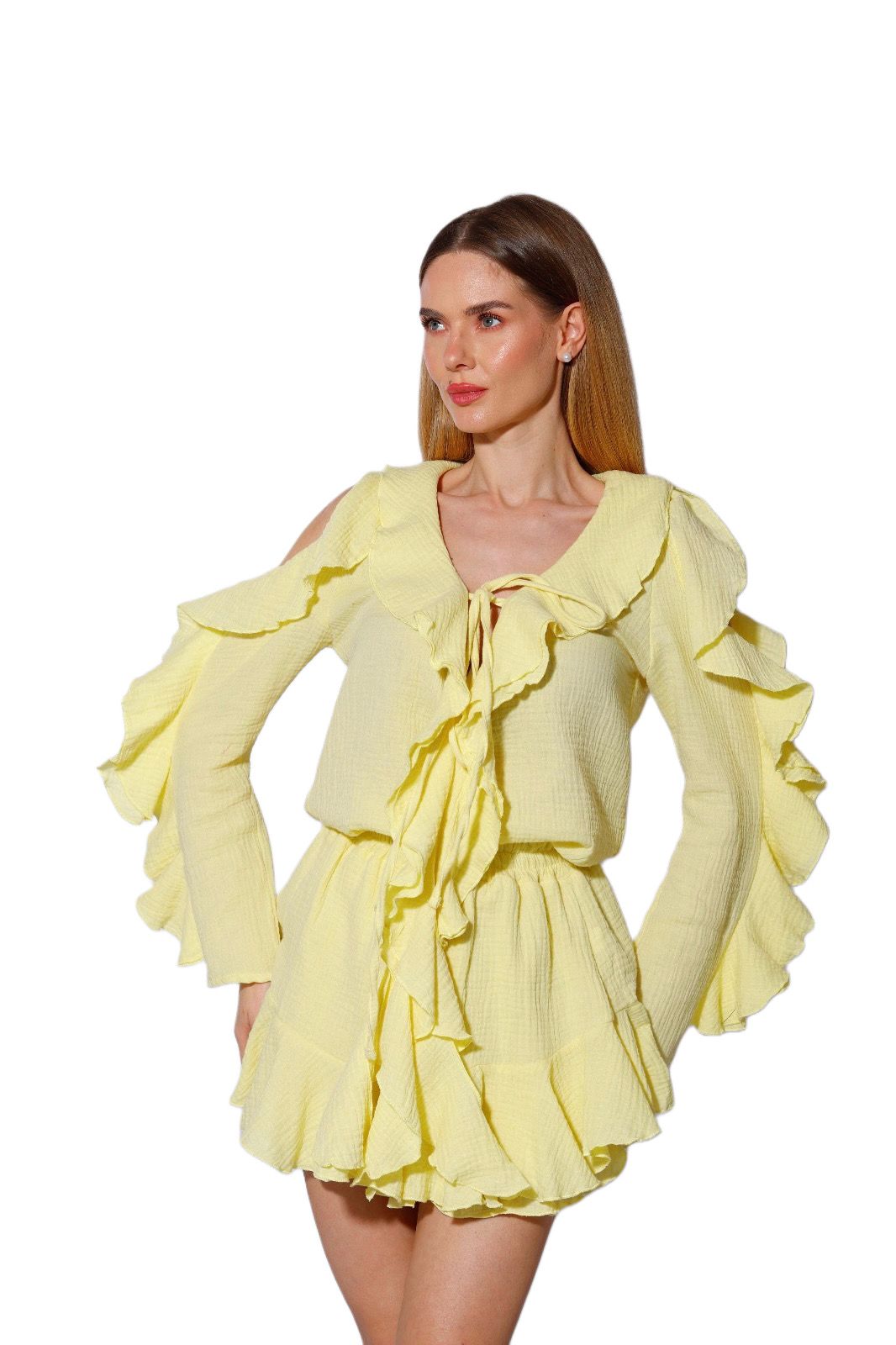 Compleul Medeea din muselină este o alegere elegantă și confortabilă pentru zilele calde de vară. Confecționat din muselină de bumbac, un material ușor, respirabil și plăcut la atingere, acest compleu oferă lejeritate și stil.