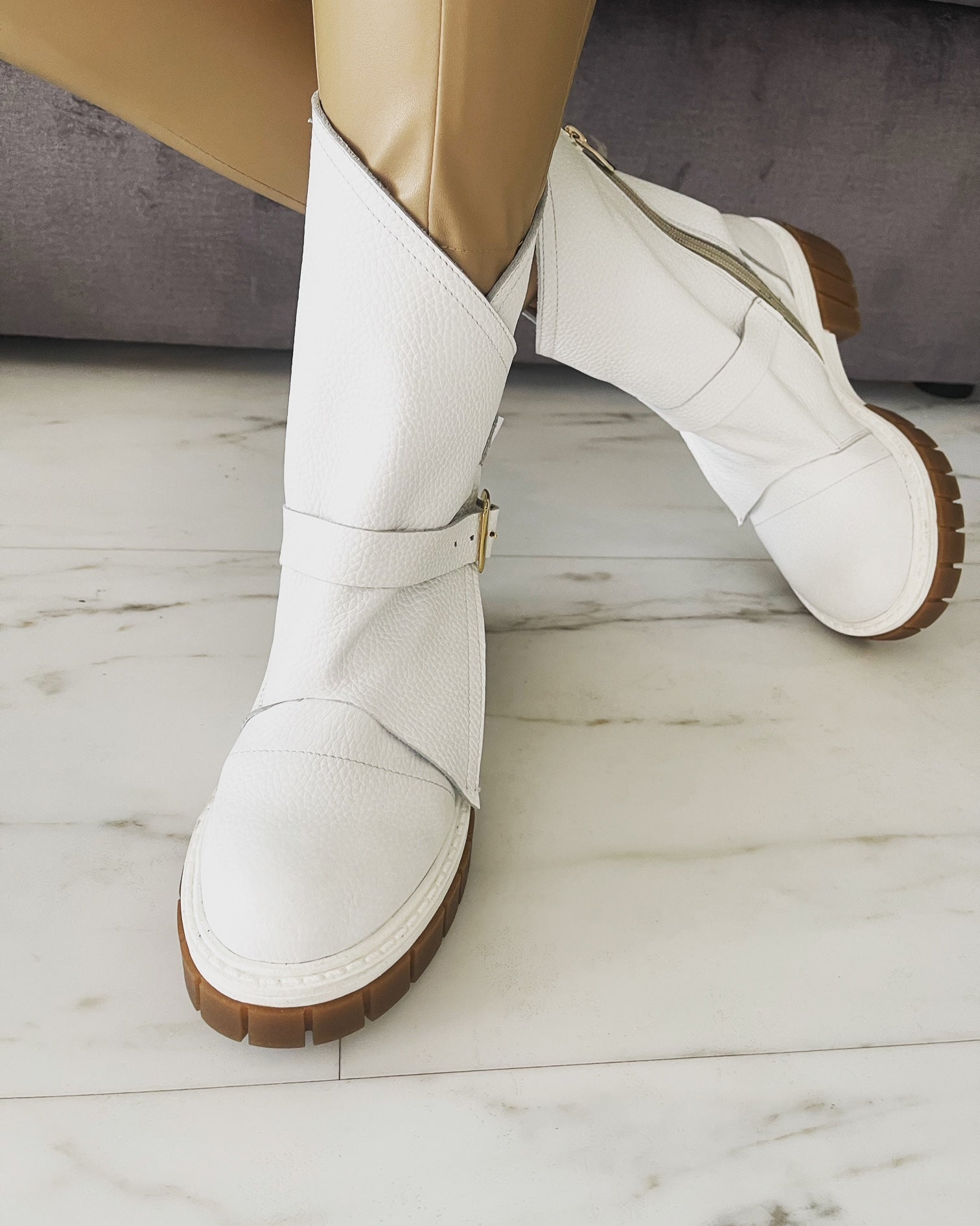 · Culoare : Piele alba aspect bizonat / accesorii aurii