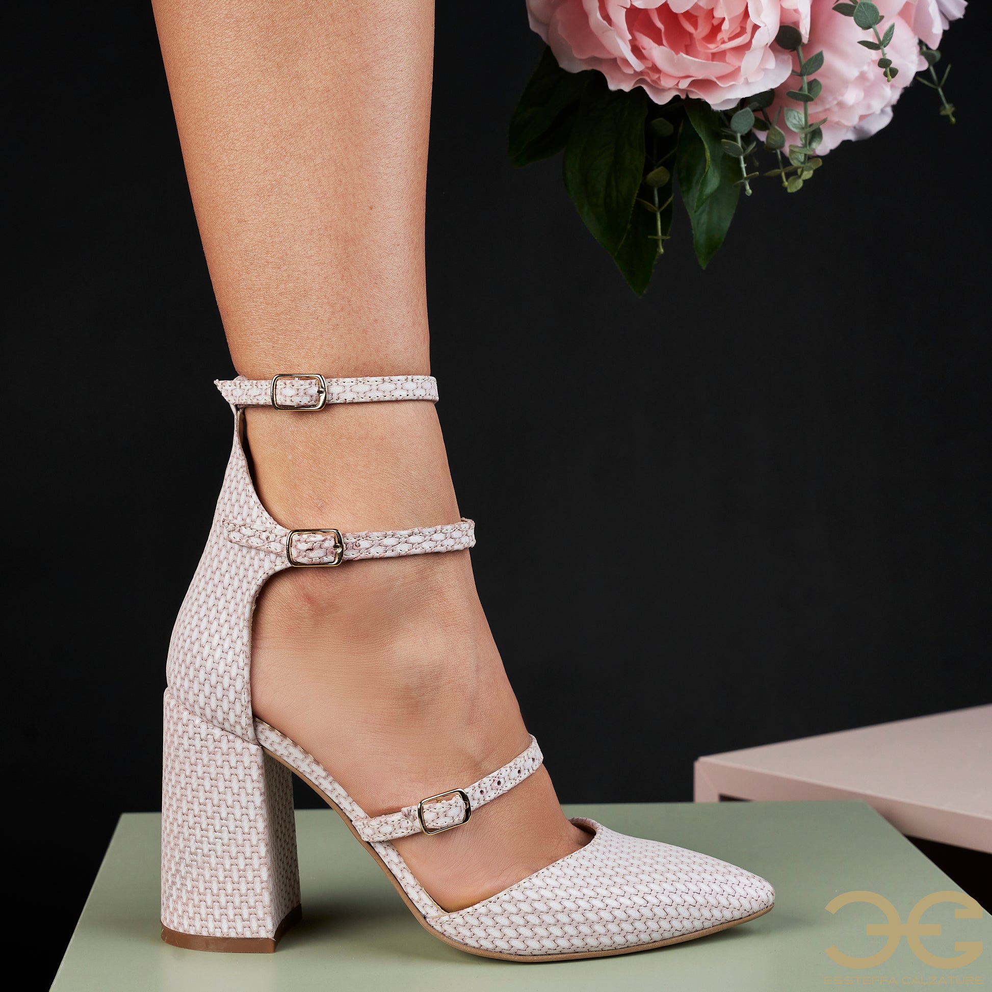 Pantofi Aurora cu toc gros și catarame elegante pe gleznă – stil, confort și stabilitate într-un singur model.
