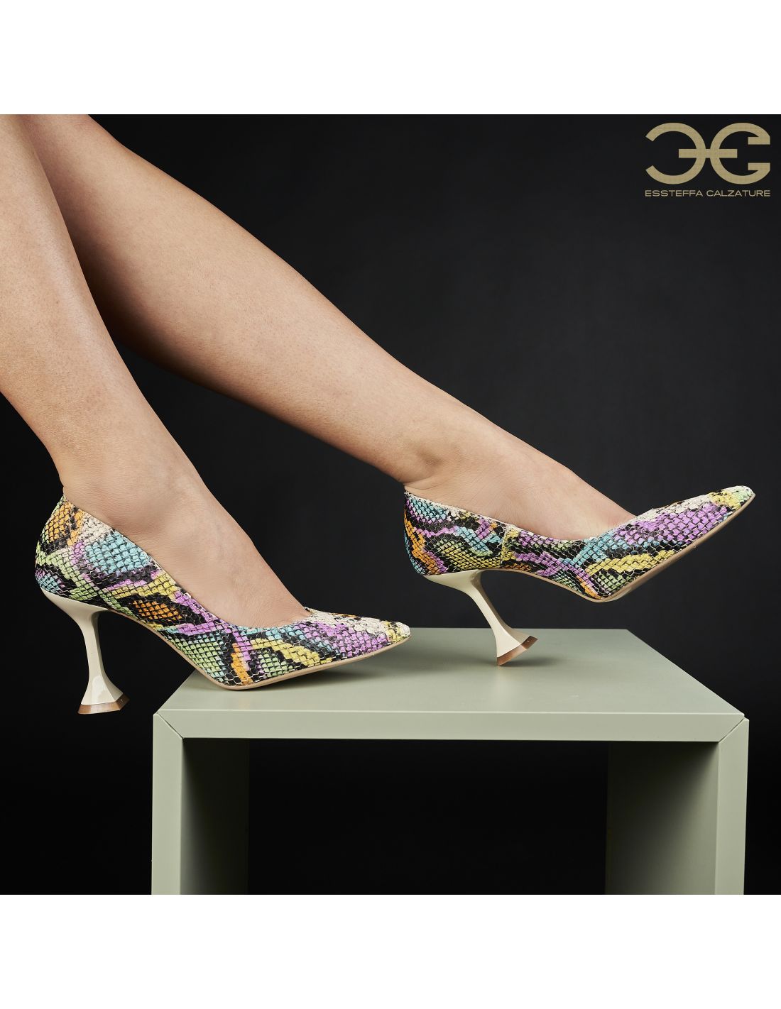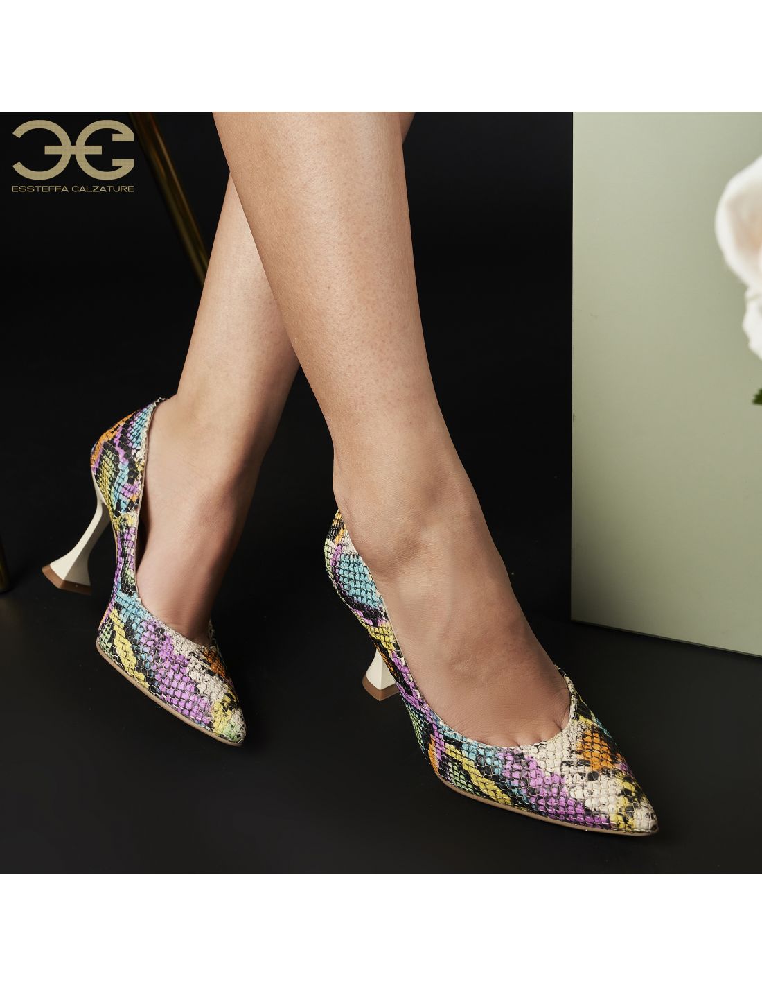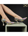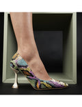Culoare mostra: Piele multicolora roz- verde lila/ toc bej