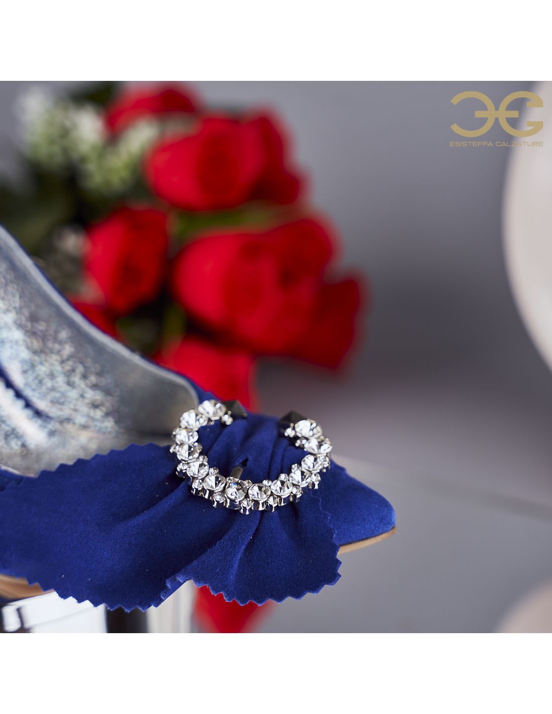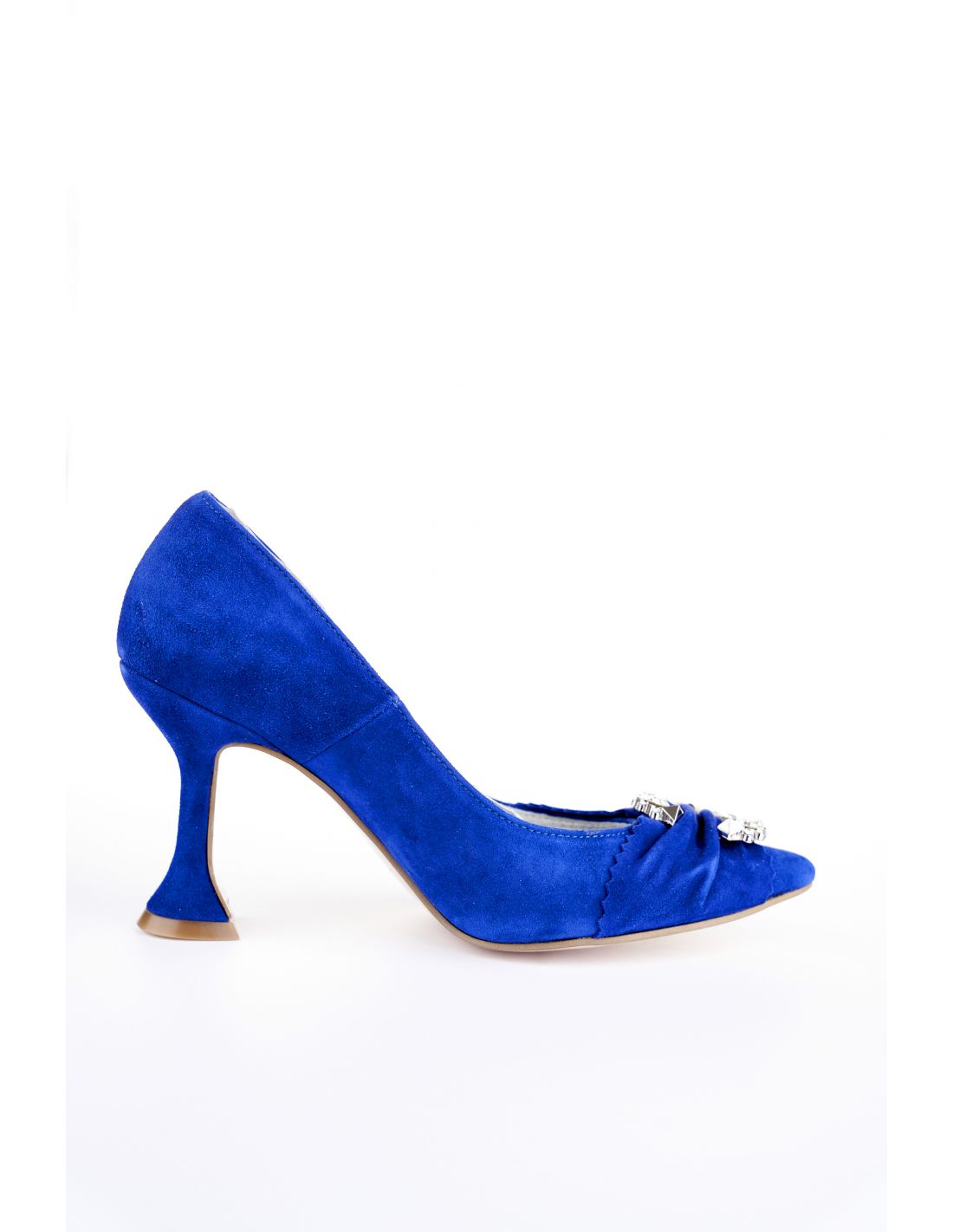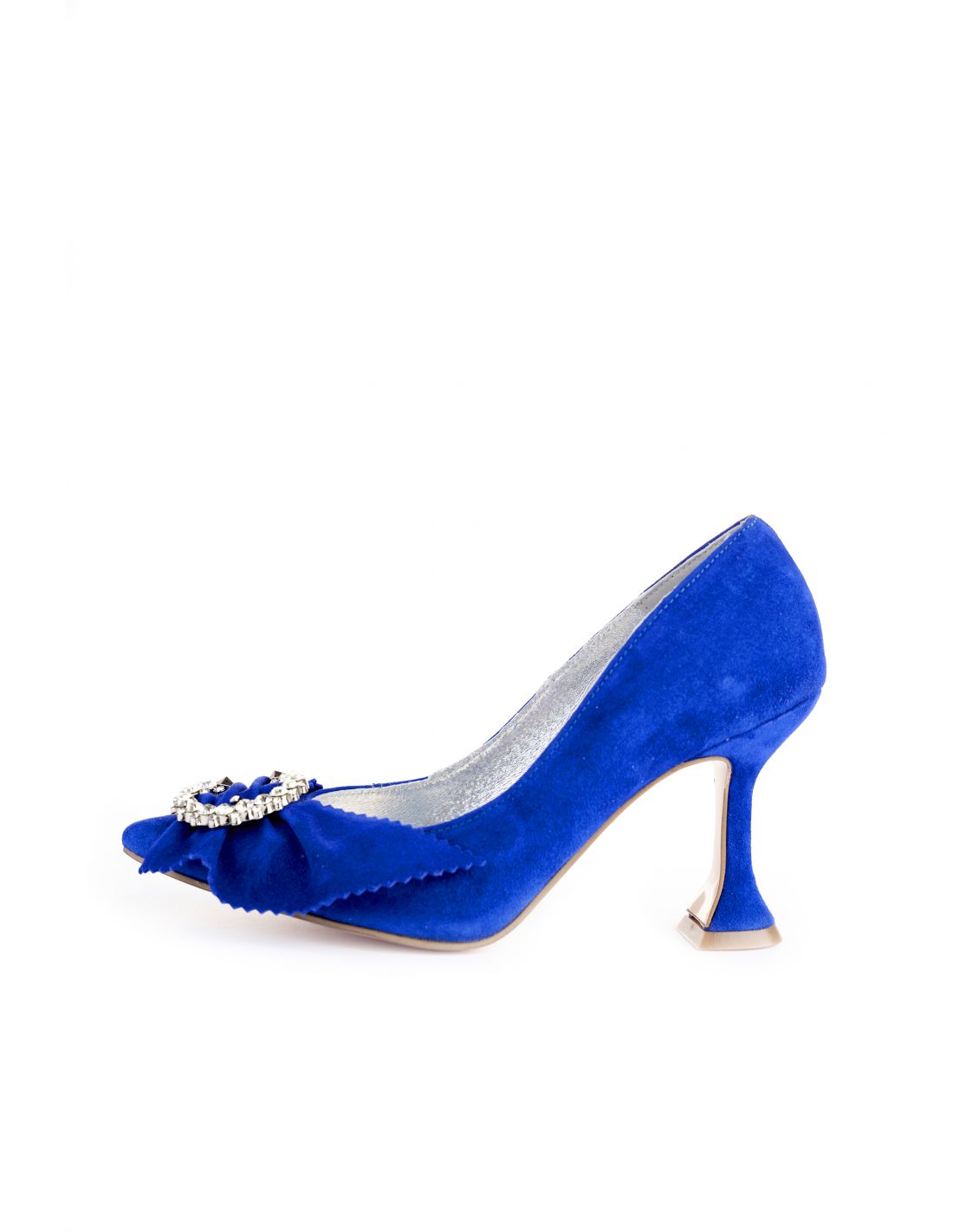 Culoare mostra: Piele intoarsa albastru electrci/ funda piele intoarsa albastru electric/ aceesoriu argintiu cu cristale