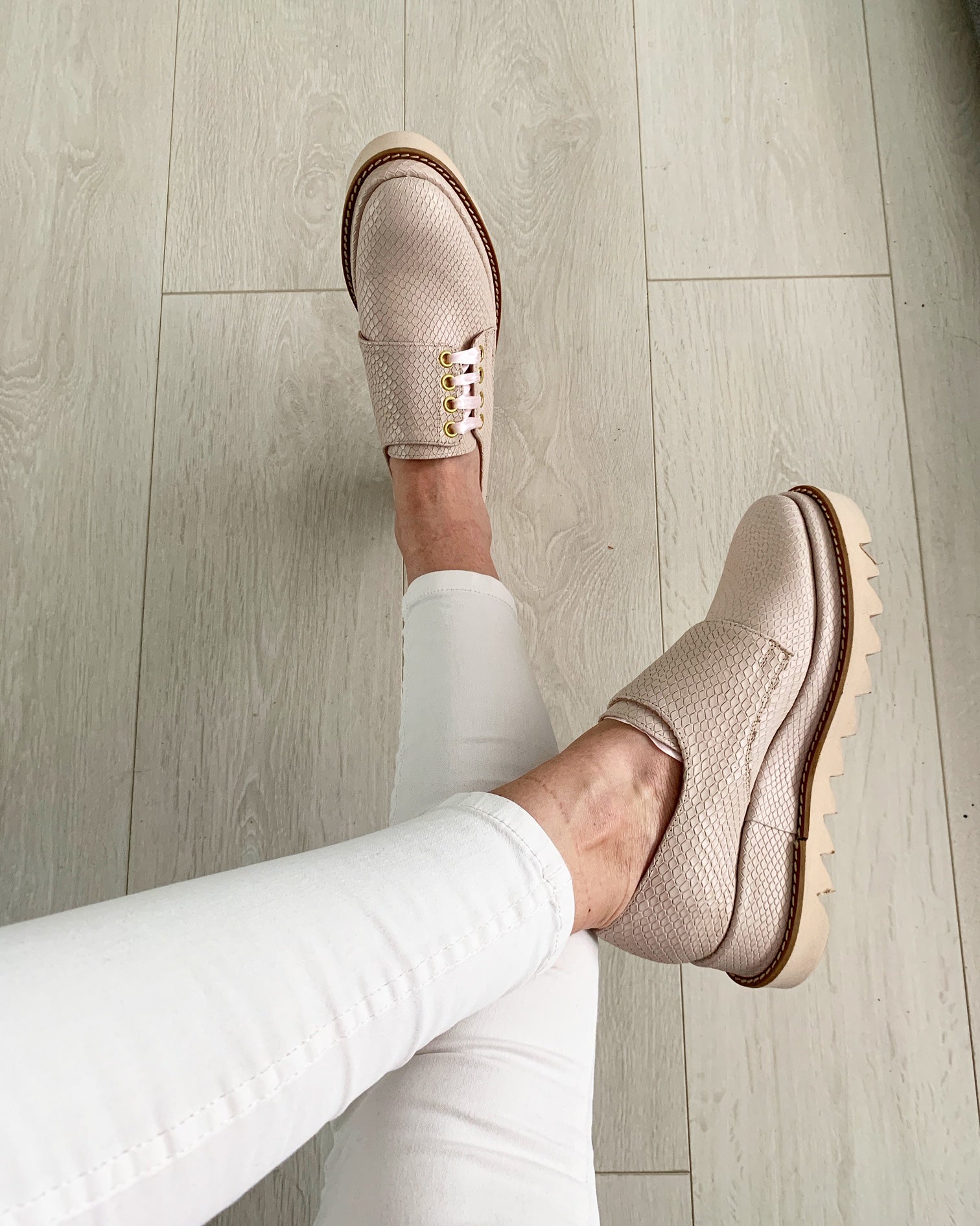 - Deoarece pielea cu care este căptuşită încălţămintea nu a fost tratată chimic în mod excesiv pentru fixarea pigmentului (cu scopul protejării pielii dumneavoastră), există riscul migrării culorii. Recomandăm purtarea ciorapilor asortaţi sau de culoare închisă.