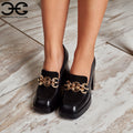 Pantofi Theo din piele naturală cu platformă și toc gros sunt alegerea perfectă pentru femeile care își doresc un look modern, elegant și confortabil în același timp. Realizați din piele naturală de calitate superioară, acești pantofi tip loafer se remarcă prin designul sofisticat, , completat de accesoriul metalic tip lanț, care adaugă un plus de stil oricărei ținute.