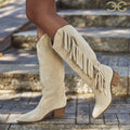 · Înălțime pe picior: 38 cm- Design lung, cu influențe western – Ideal pentru outfituri de toamnă-iarnă, rochii vaporoase sau ținute casual.