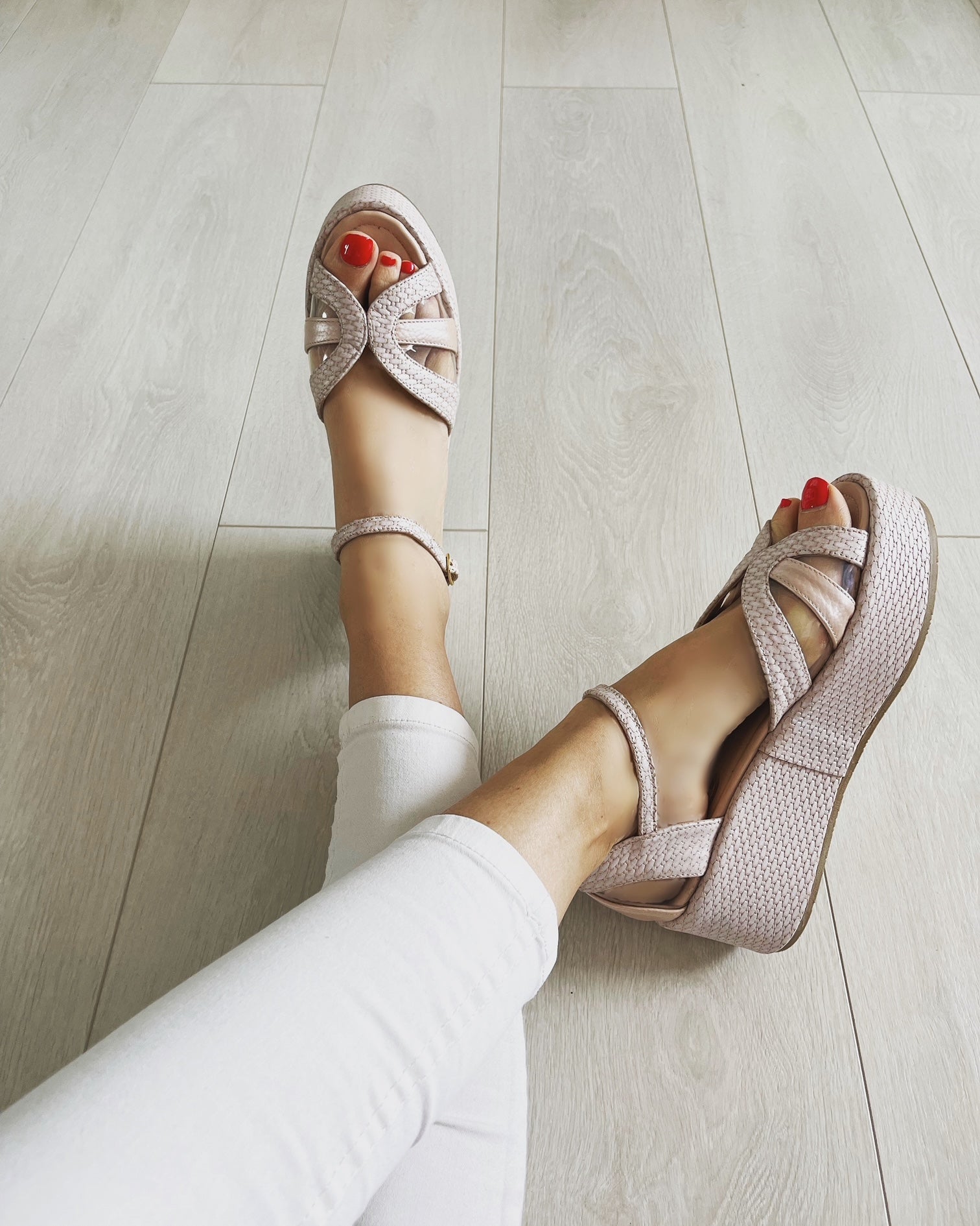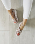 Designul cu baretă pe gleznă asigură o fixare fermă și adaugă un detaliu feminin și rafinat, ideal pentru a completa atât ținutele casual, cât și pe cele de ocazie. Materialele ușoare și flexibile îți oferă libertate de mișcare și confort pe tot parcursul zilei.