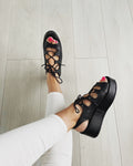Designul cu șireturi adaugă un aer chic și permite o ajustare perfectă pe picior, oferind stabilitate și un plus de rafinament. Fie că le porți la o ieșire în oraș, la o petrecere sau într-o vacanță la mare, sandalele Simone sunt alegerea ideală pentru zilele călduroase de vară.